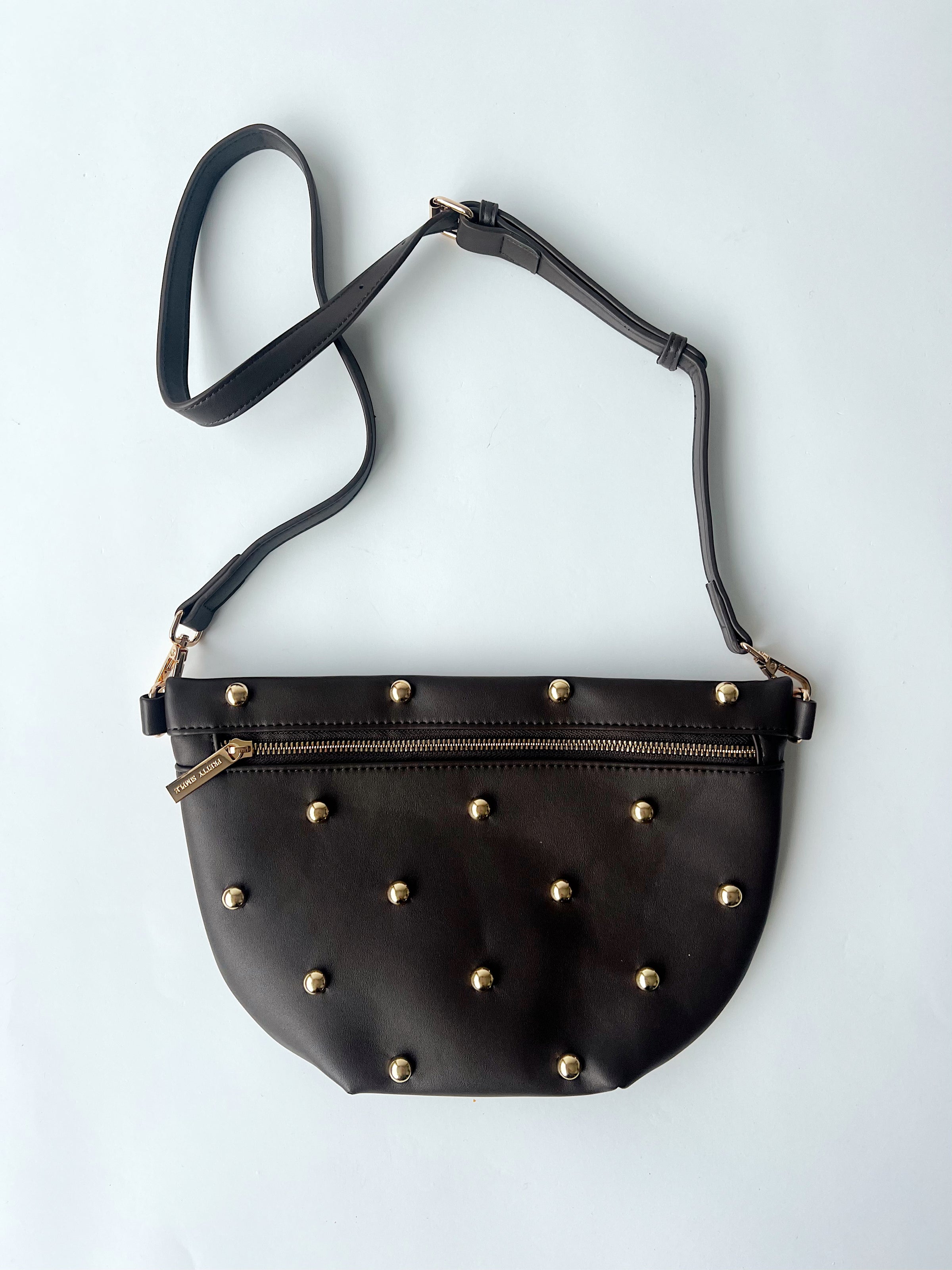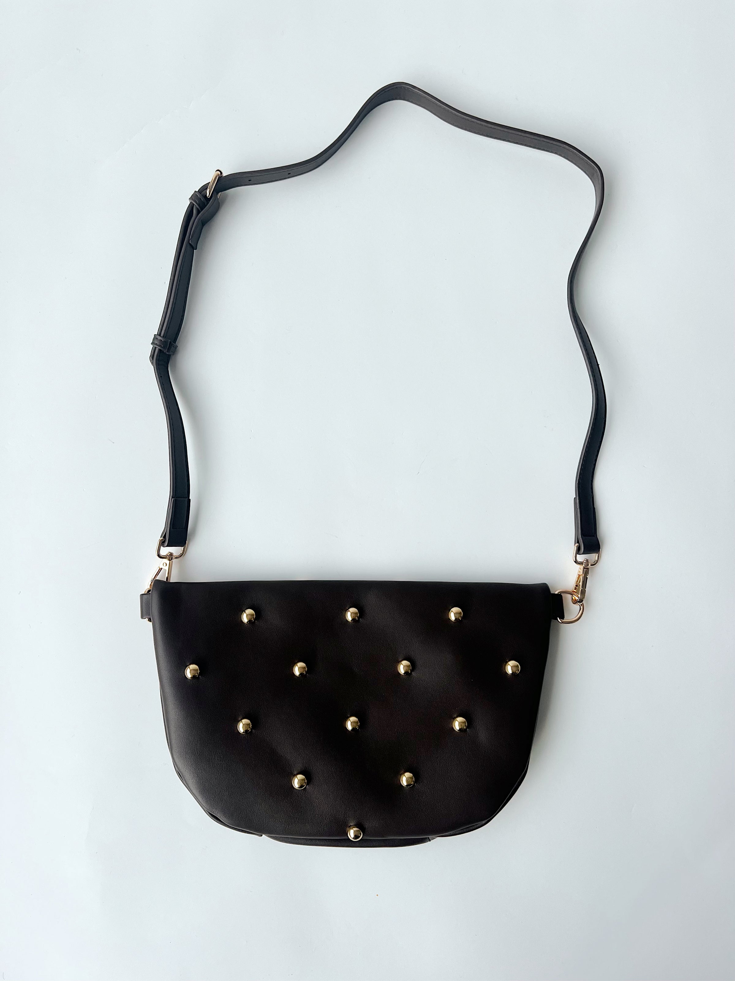 The Westlyn Woven Gold Studded Bag in Chocolate
