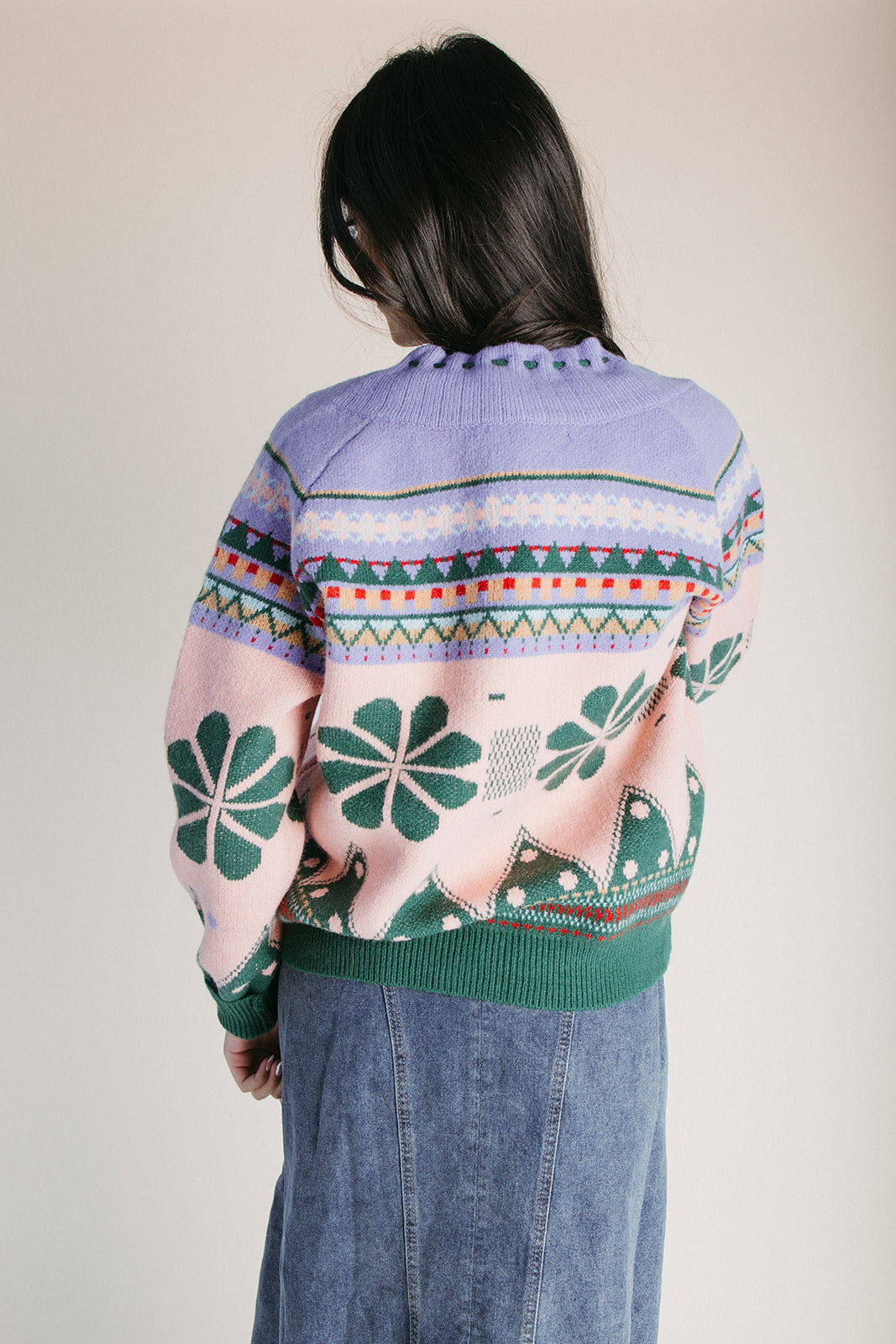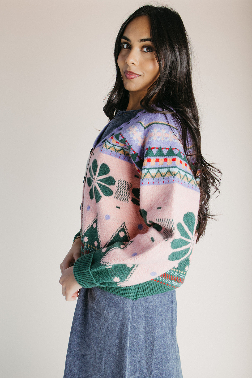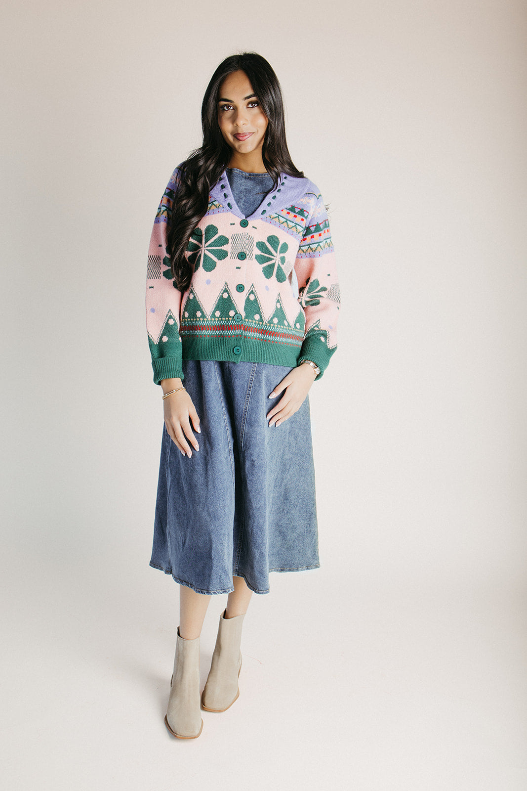 Meet your new favorite layering piece—a collared cardigan that refuses to be boring. The dreamy lavender and vibrant green color combo is giving main character energy, while the crisp collar keeps things polished and put-together. Slip it on over a dress, a tee, or basically anything in your closet and instantly level up your vibe. Cozy enough for lounging, stylish enough for stepping out, this cardigan is your ticket to looking effortlessly chic without breaking a sweat.