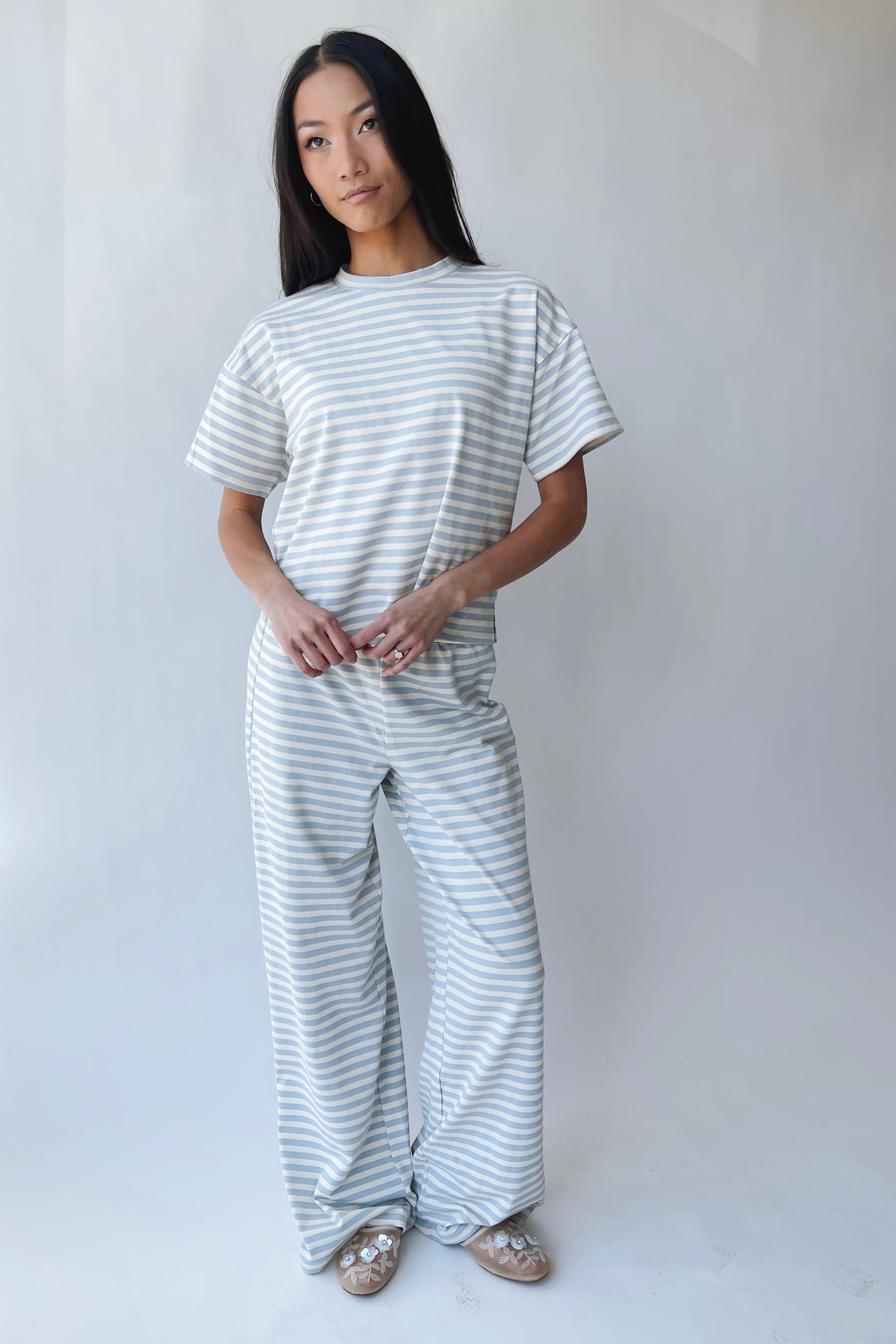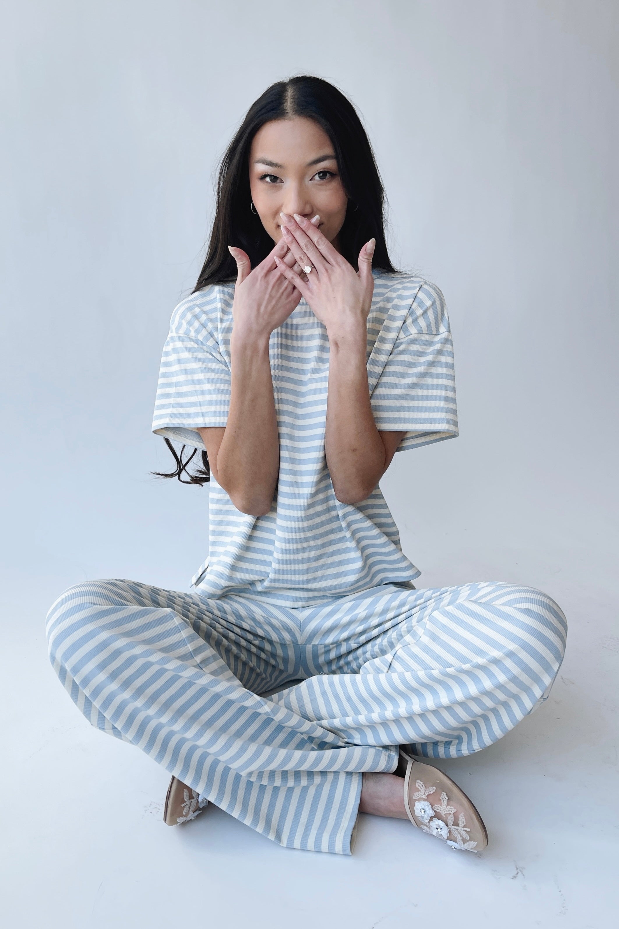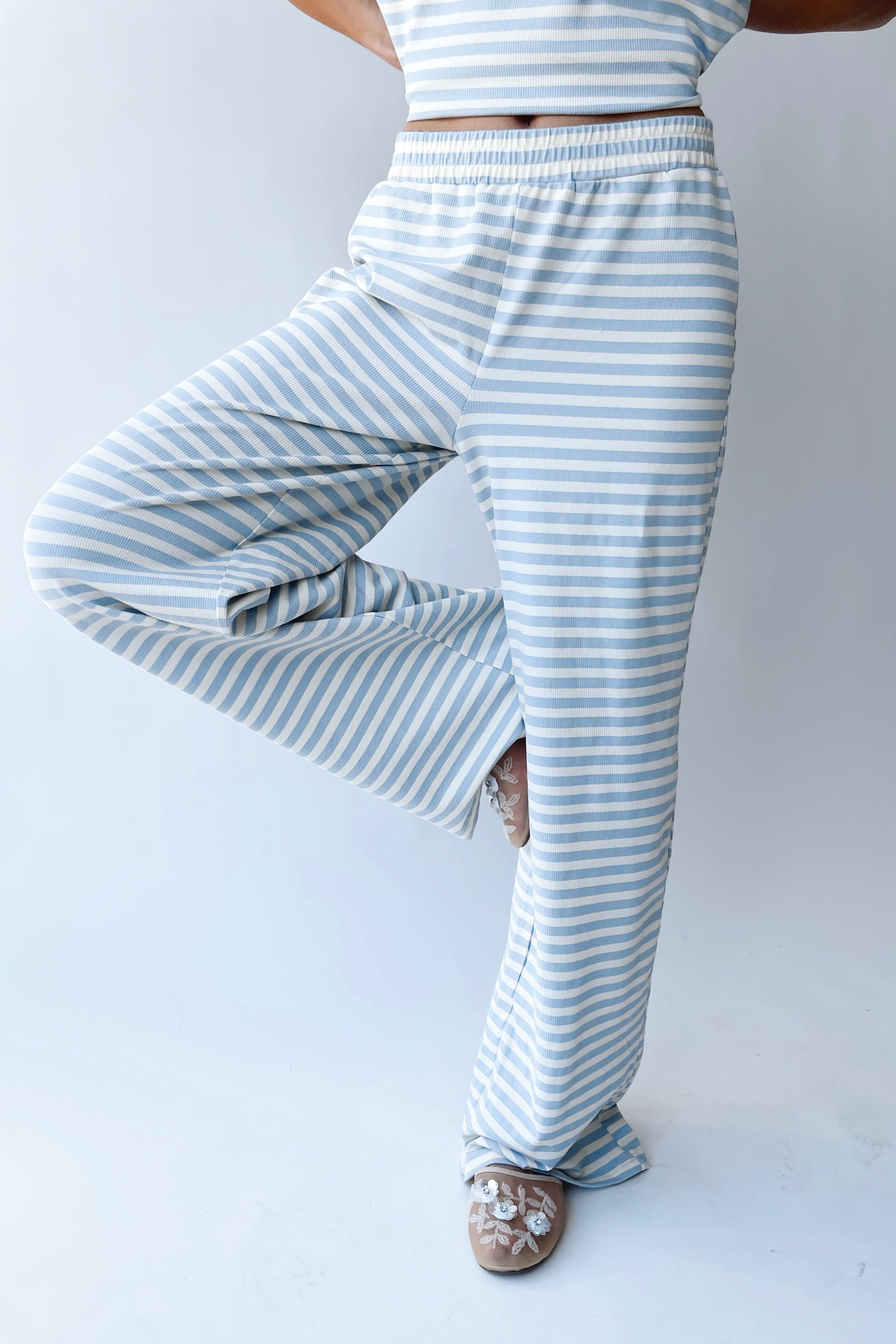 Slip into ultimate comfort with The Chalamet Striped Lounge Pant in Blue—your new favorite excuse to stay cozy all day long. Featuring classic stripes that feel effortlessly cool, these pants are perfect for lounging, working from home, or pretending you're way more put-together than you actually are. Soft, breathable fabric keeps you feeling relaxed without sacrificing style, while the laid-back vibe makes them endlessly versatile. Pairs perfectly with The Timothee Striped Lounge Tee in Blue!