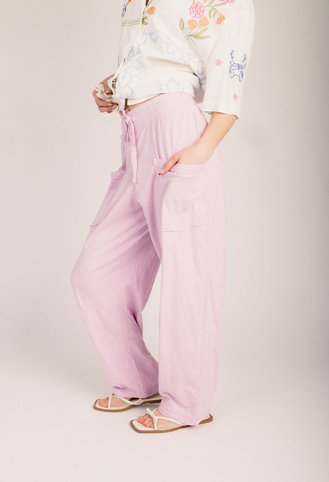 The Krupa Cotton Barrel Lounge Pant in Sweet Lilac