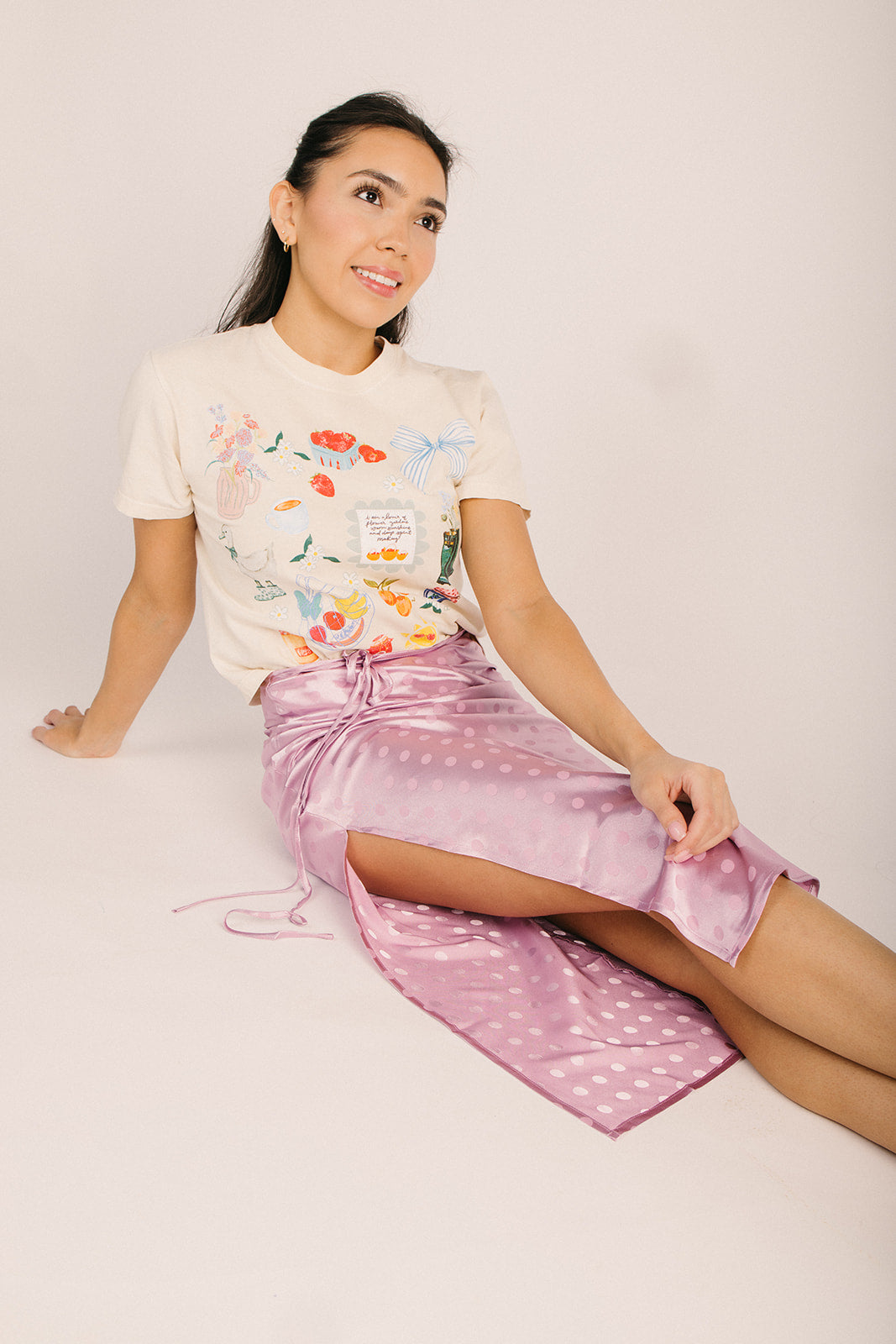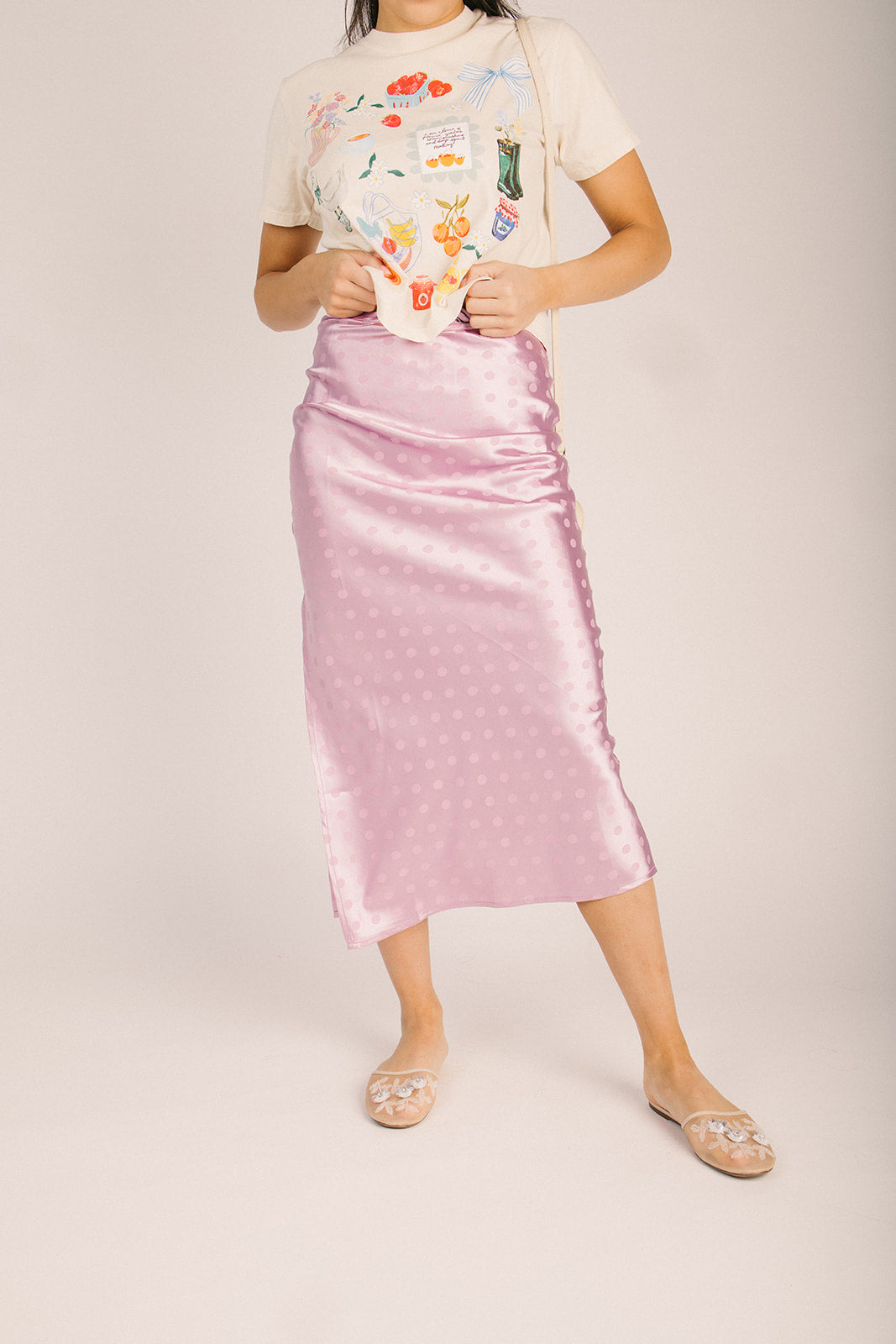 The Manny Polka Dot Midi Skirt in Lavender is your ticket to effortless charm. This whimsical midi skirt features a delightful polka dot pattern that dances across a soft lavender backdrop, perfect for adding a pop of personality to any outfit. The midi length offers a flattering silhouette that works for everything from casual brunches to date nights. Pair it with a crisp white tee for a classic look or dress it up with a silky blouse for something more sophisticated. A playful wardrobe essential that proves dots are always in style.