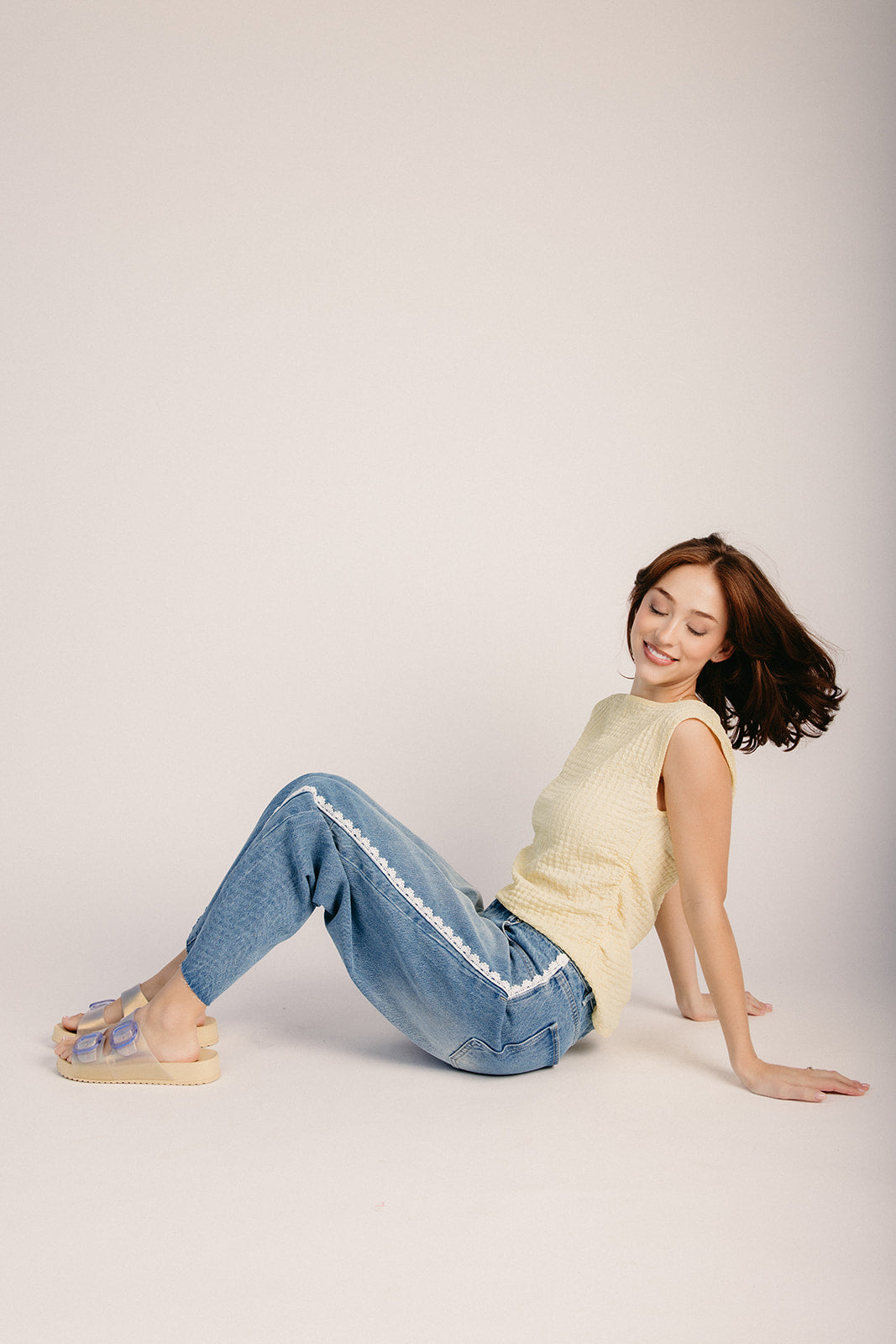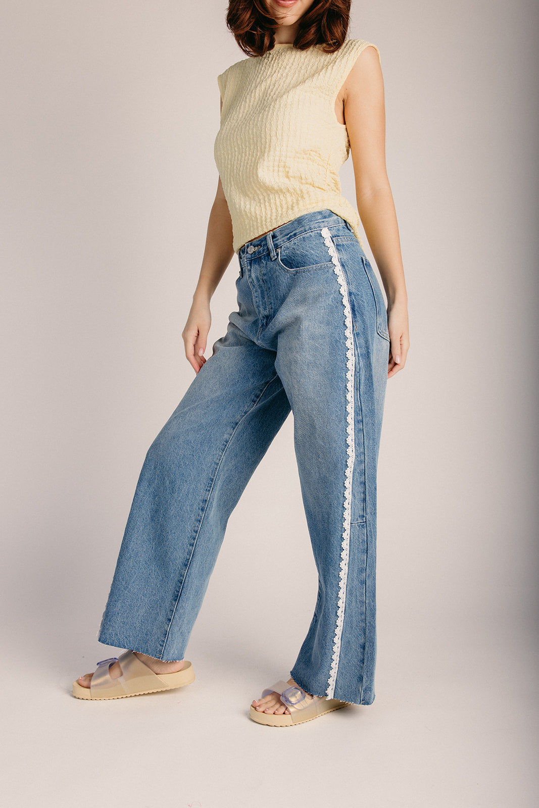 The Toone Lace Detail Barrel Jean in Denim Elevate your denim game with these show-stopping barrel jeans that prove details matter. Featuring delicate lace accents that add an unexpected touch of romance, these jeans strike the perfect balance between edgy and elegant. The barrel silhouette creates a flattering, modern fit that works whether you're dressing up for a night out or keeping it casual. Pair with your favorite sneakers or heels—this versatile piece is ready for whatever adventure comes your way.