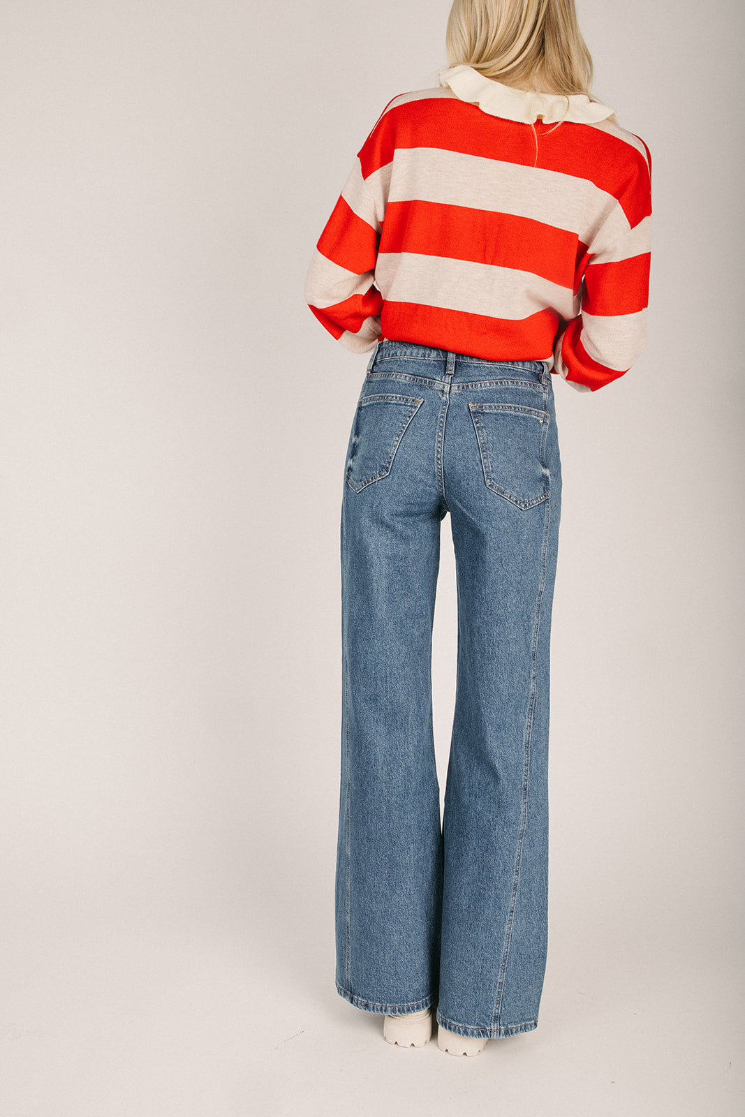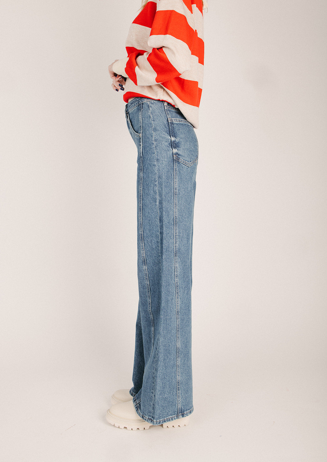 The Underwood Side Panel Wide Leg Jean in Chathams Sea