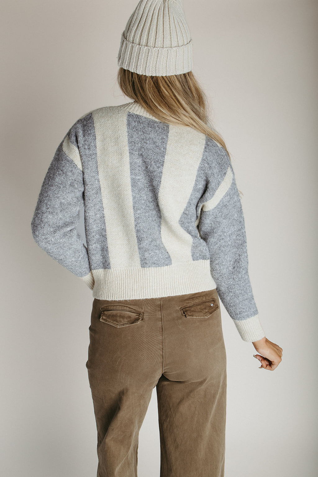 The Edina Ribbed Knit Midi Dress in Cream