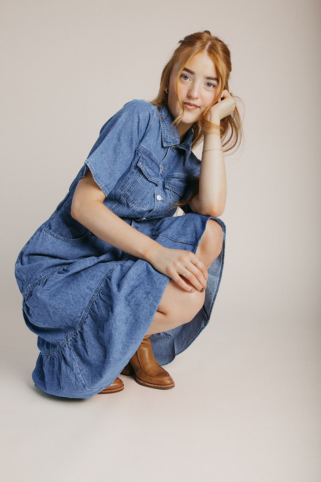 The Dennis Dotted Button-Up Midi Dress in Rust