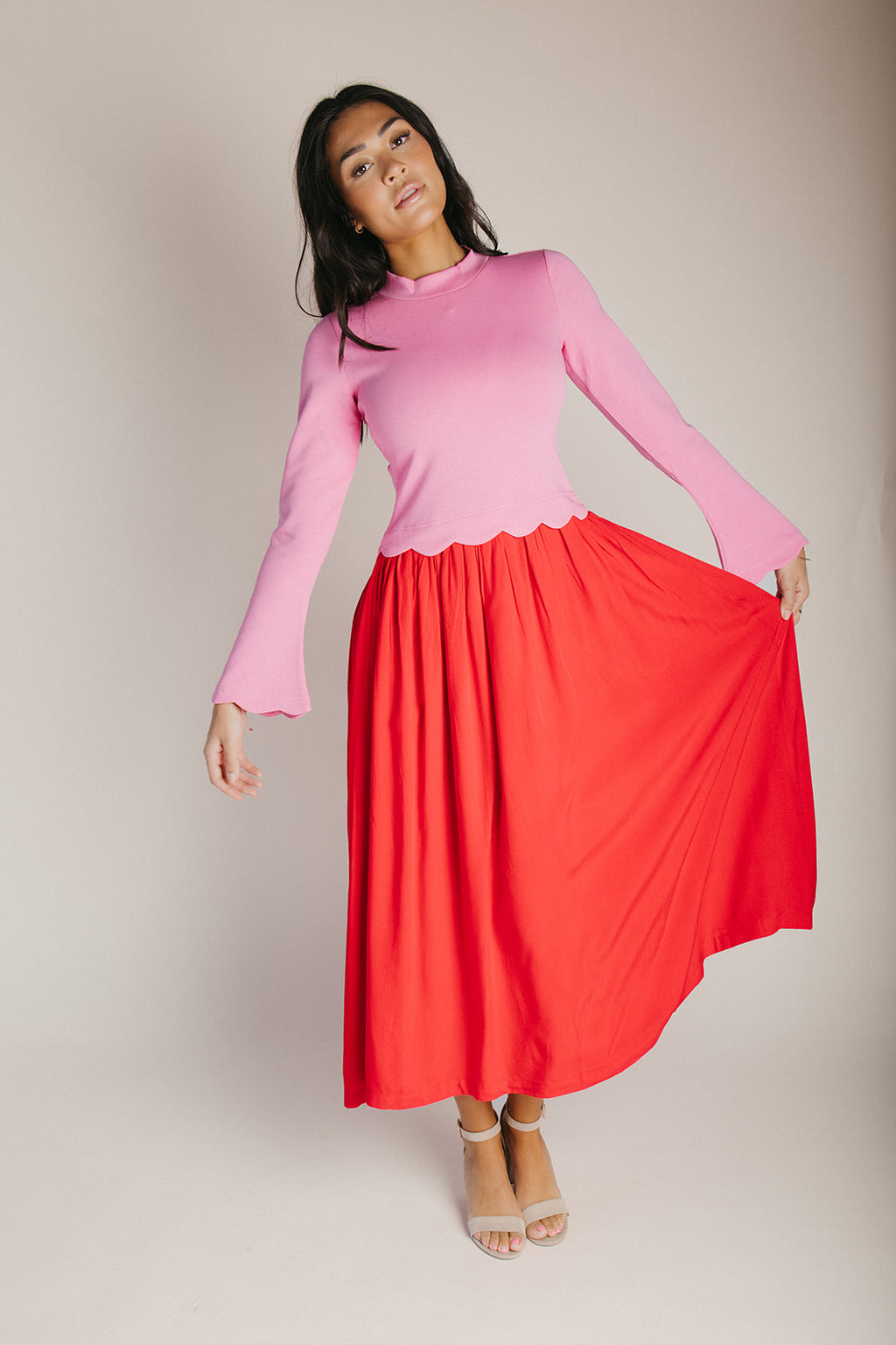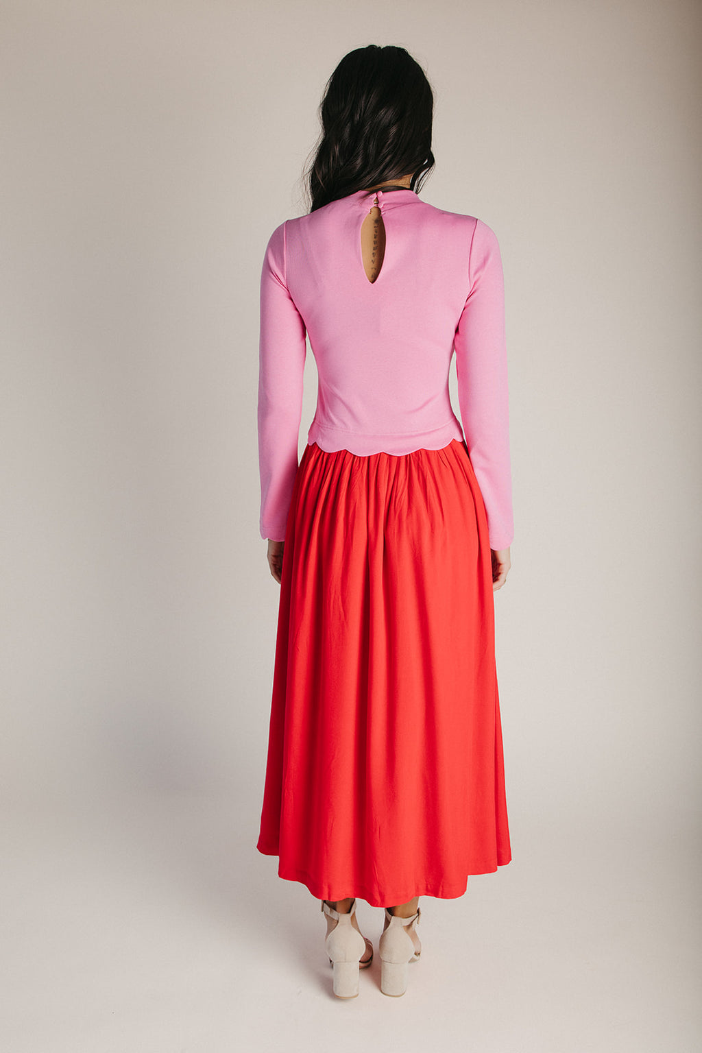 The Zenie Colorblock Maxi Dress in Pink + Red