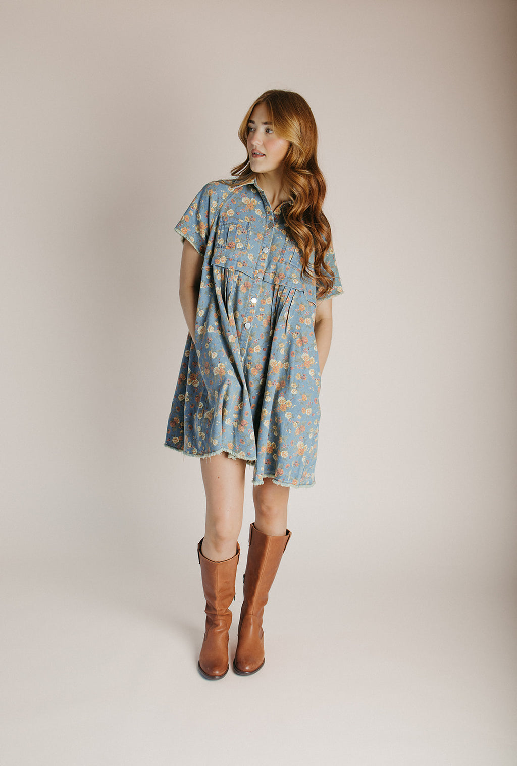 The Brinson Puff Sleeve Floral Dress in Pink + Taupe