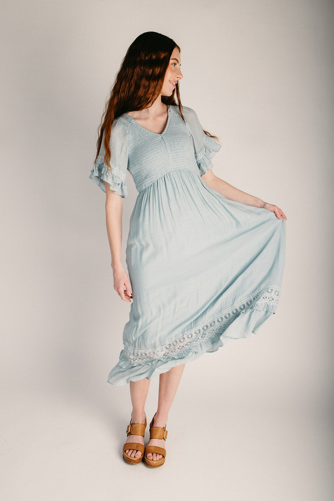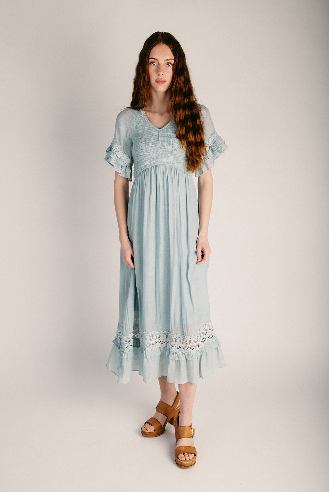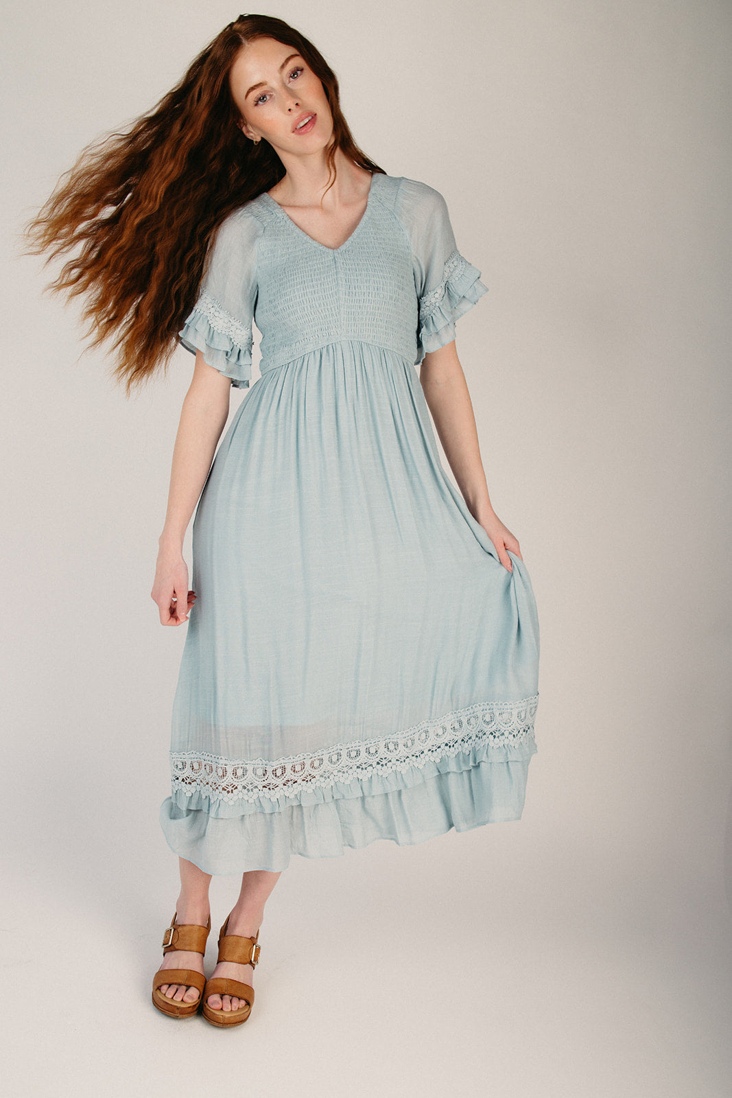 The Hannah Smocked Midi Dress in Light Blue