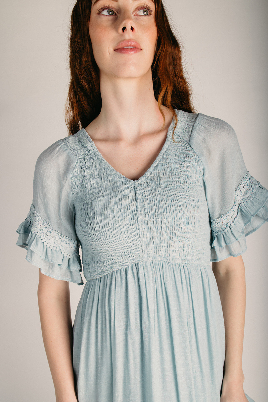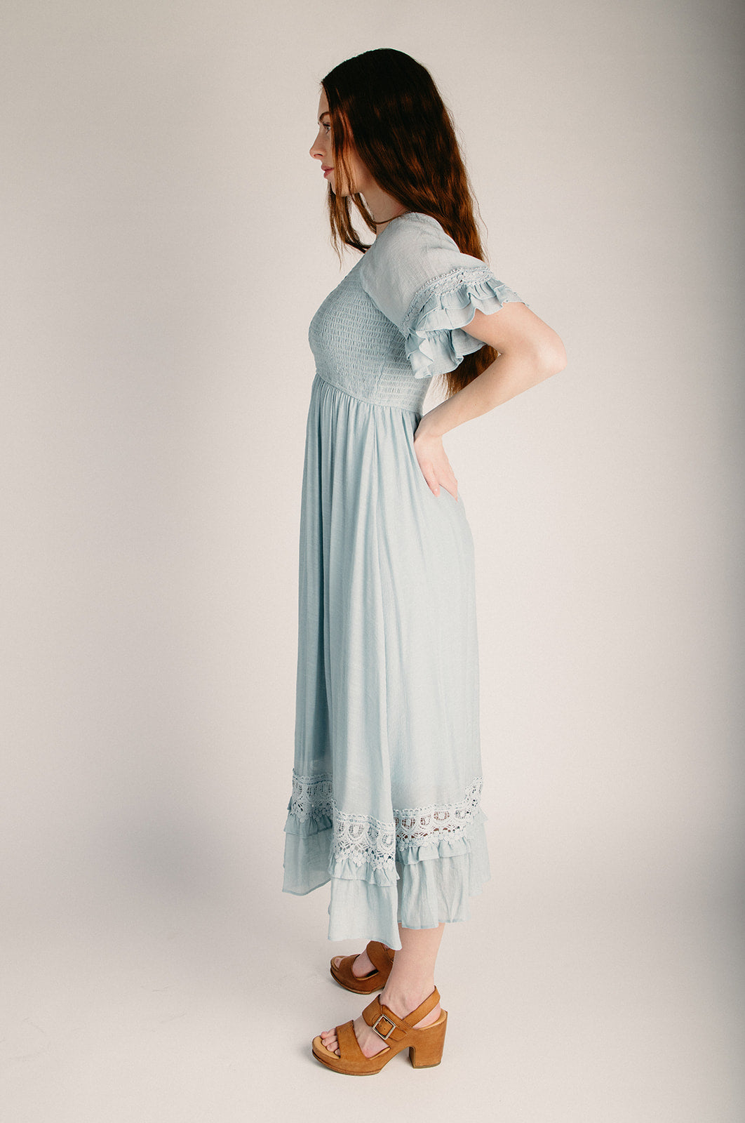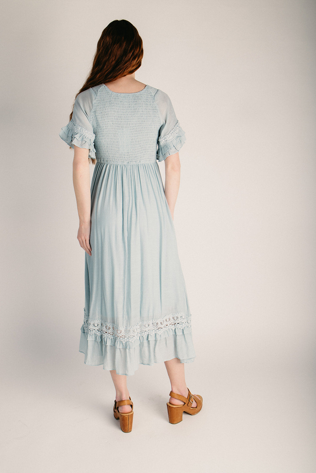 The Hannah Smocked Midi Dress in Light Blue