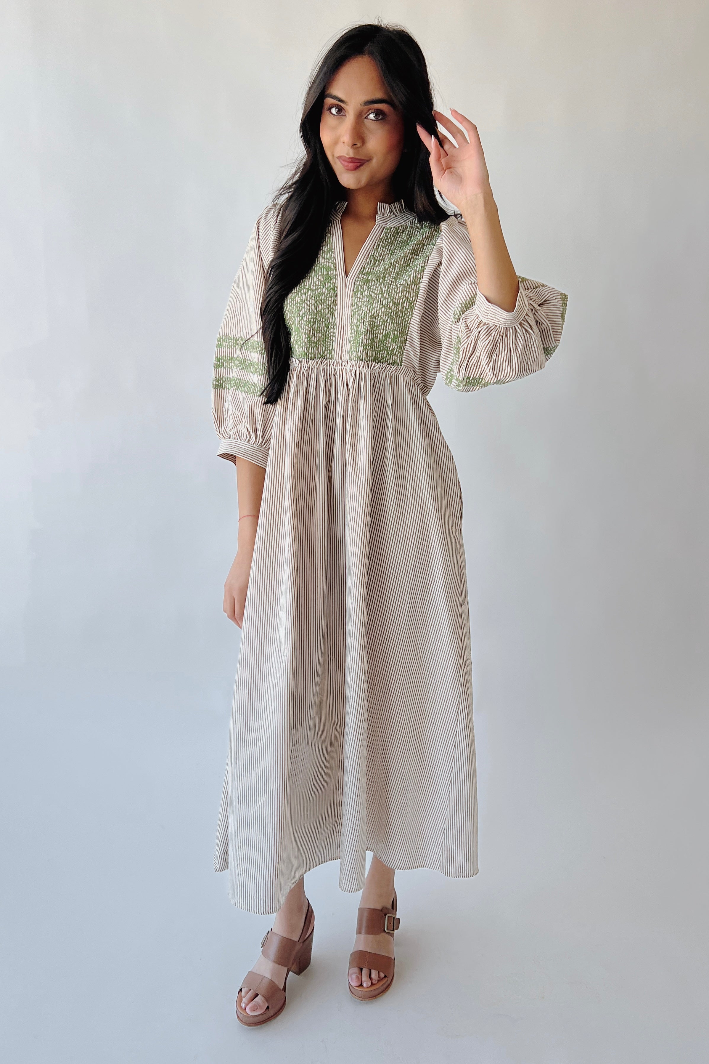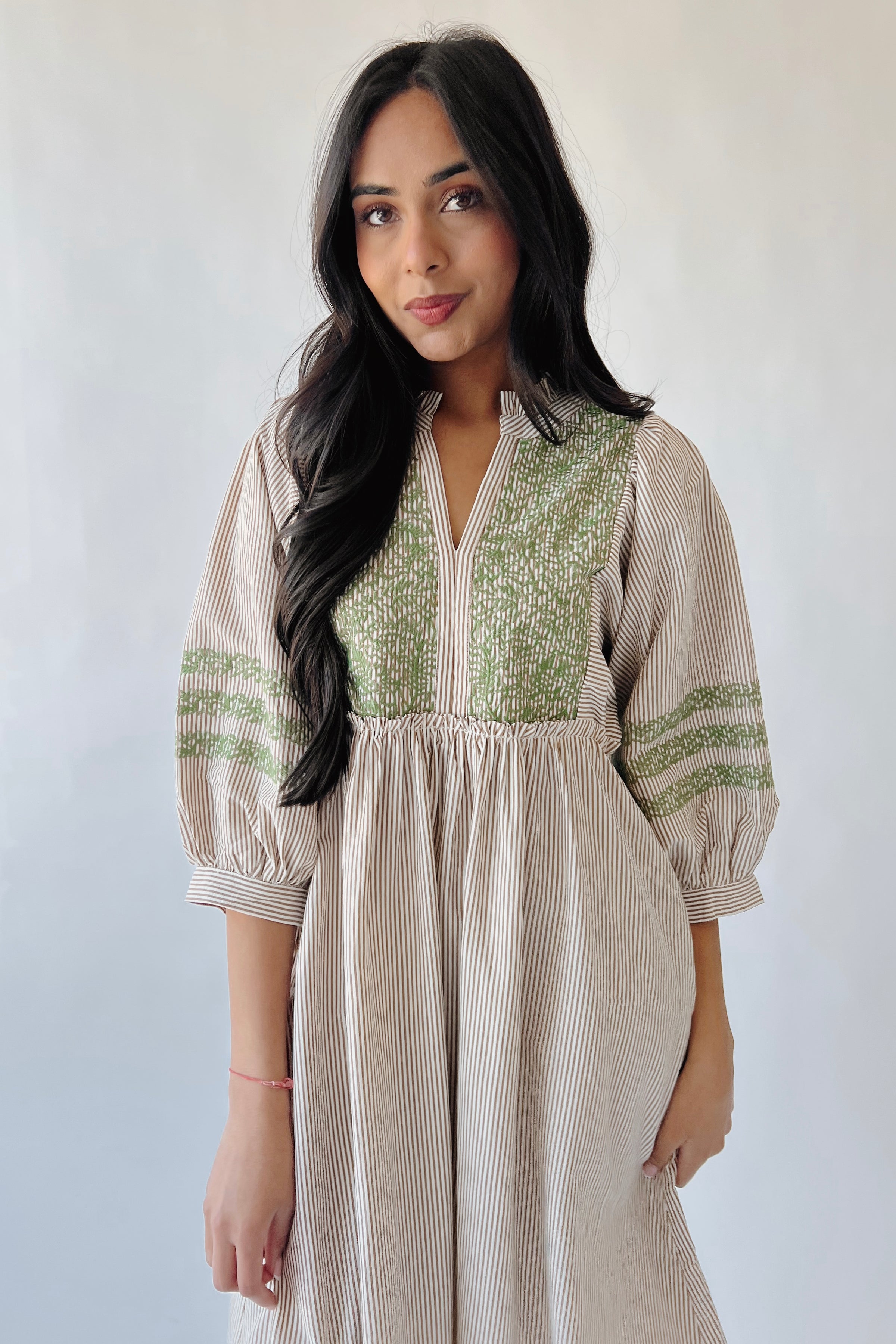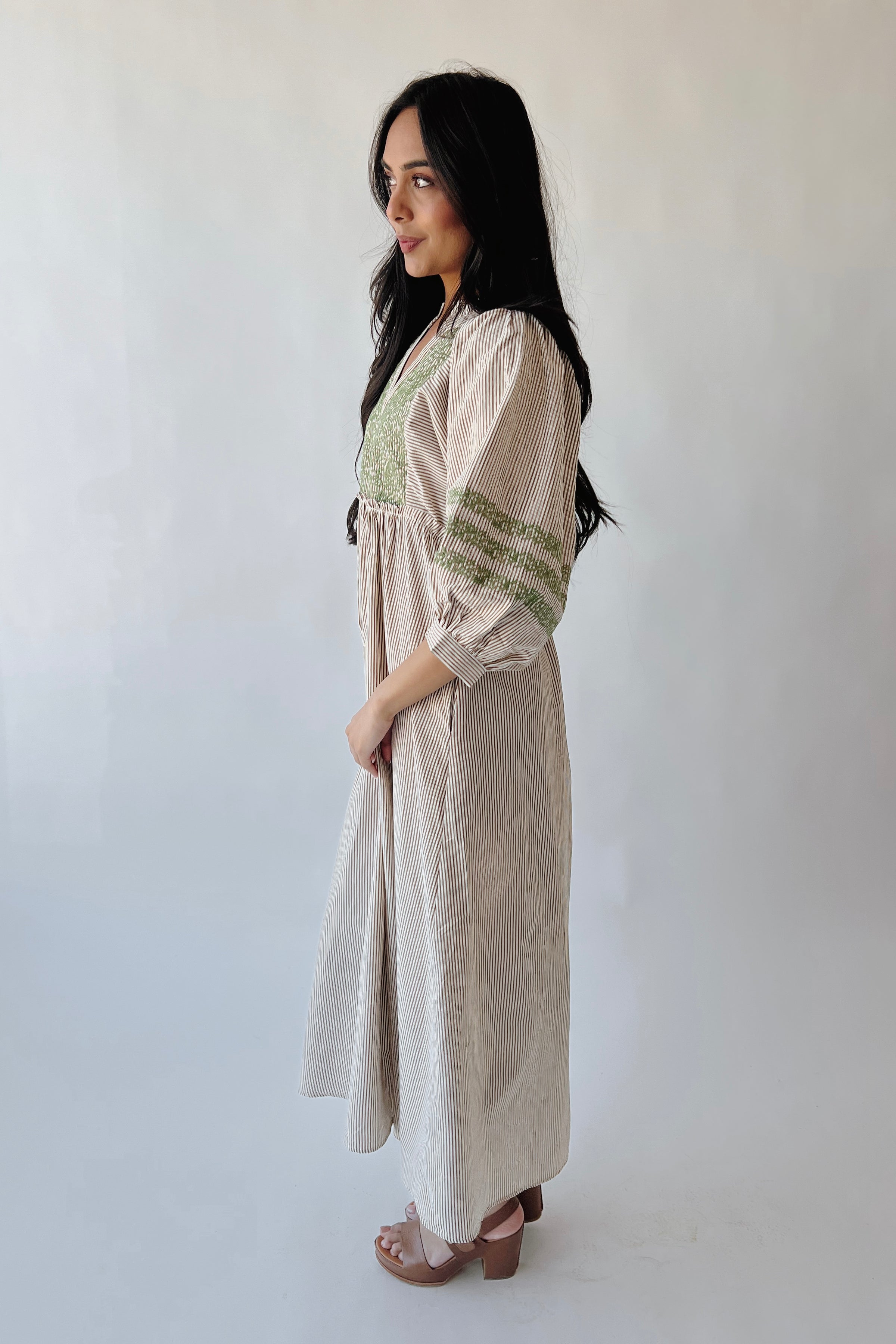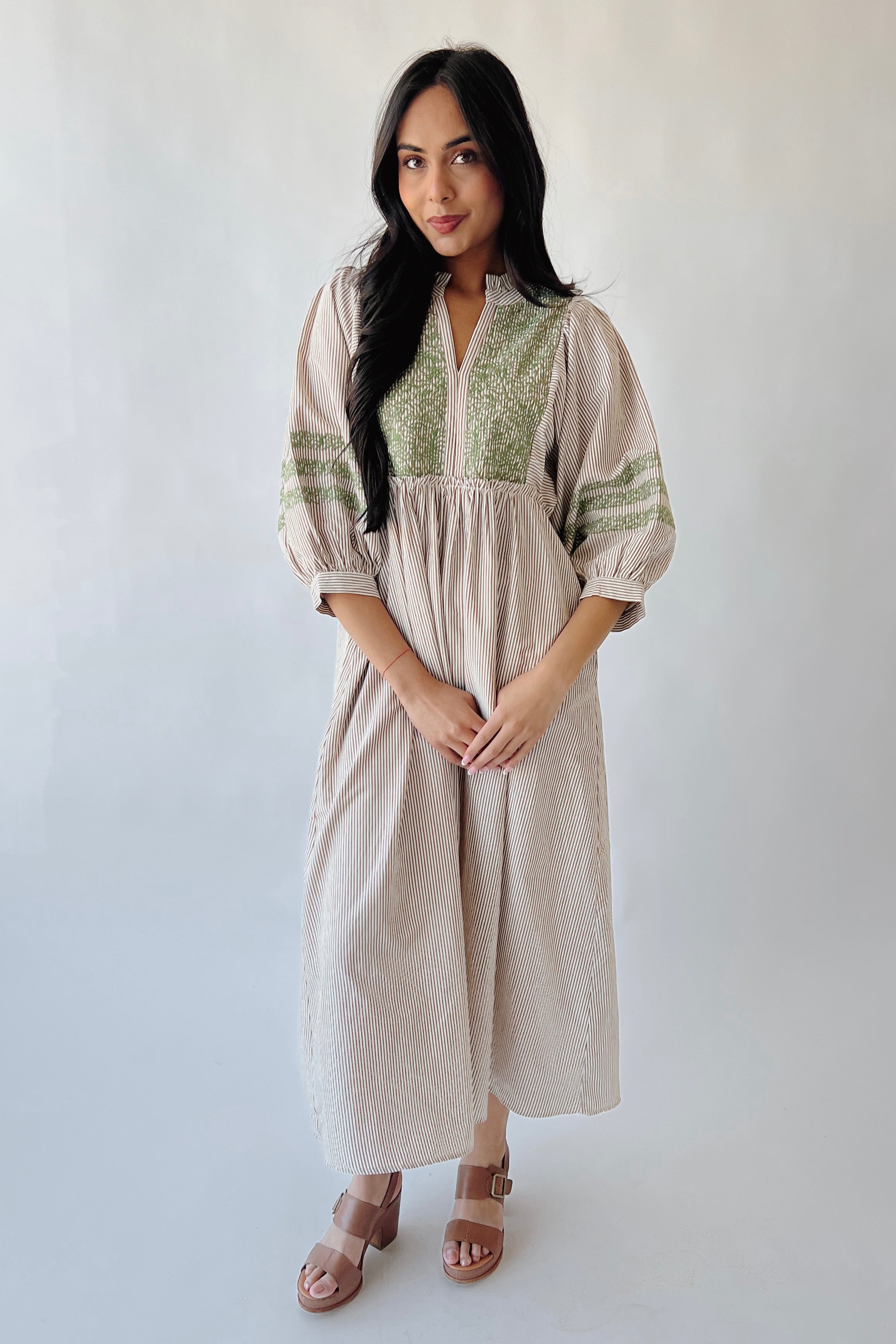 The Huglin Embroidered Detail Midi Dress in Toffee