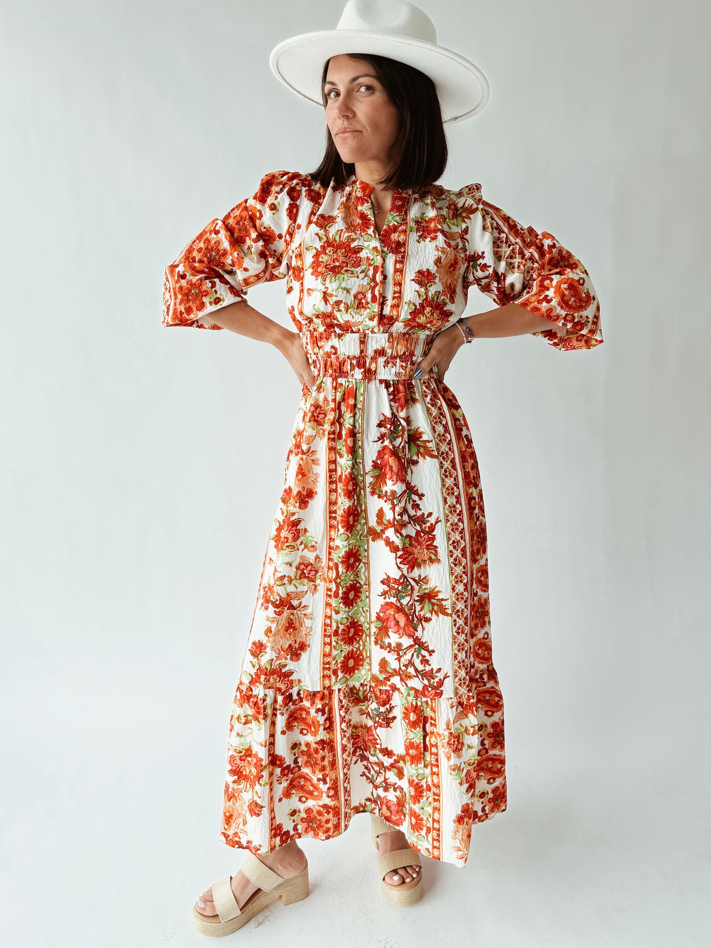 The Marcantel Floral Midi Dress in Bohemian Garden