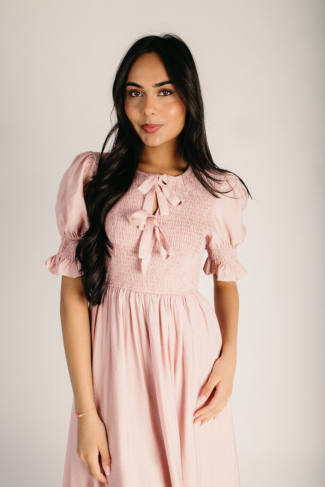 Effortlessly elegant and oh-so-dreamy, the Melland Smocked Woven Midi Dress in Blush is your new go-to for those days when you want to feel put-together without trying too hard. The romantic smocked detailing adds texture and visual interest, while the soft rayon-nylon blend drapes beautifully against your skin. Perfect for brunch dates, garden parties, or whenever you need a dress that's both comfortable and chic. Slip it on and let the compliments flow!