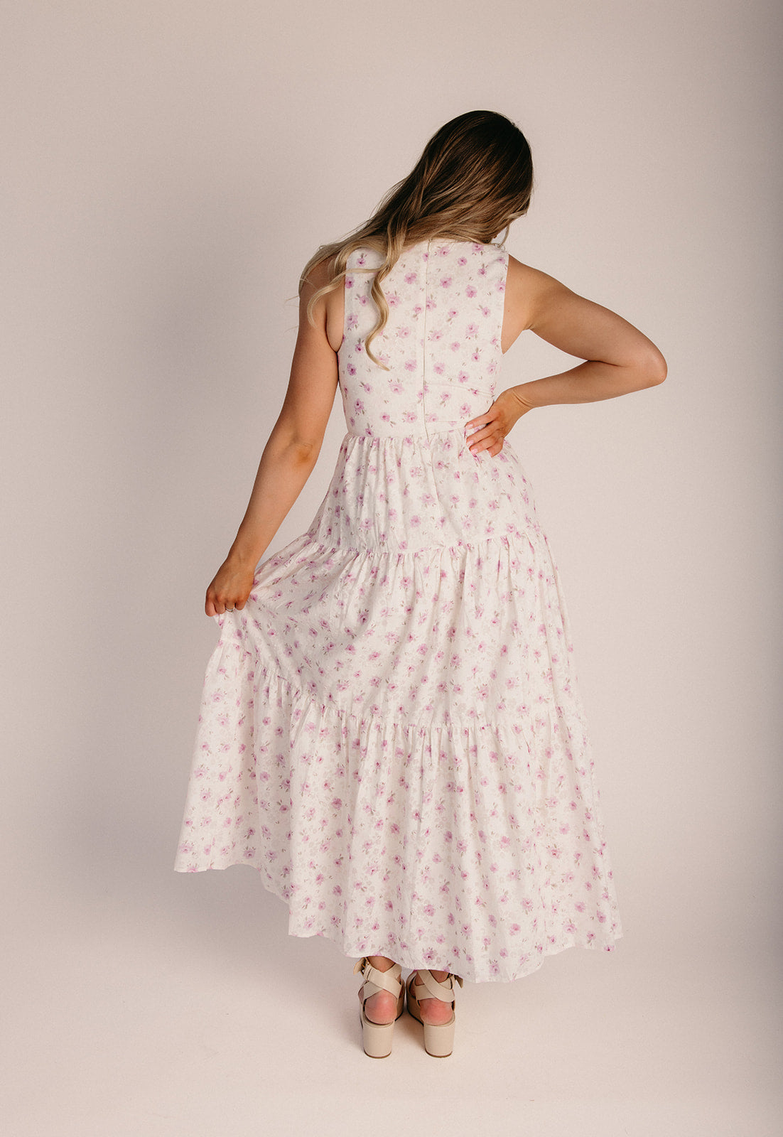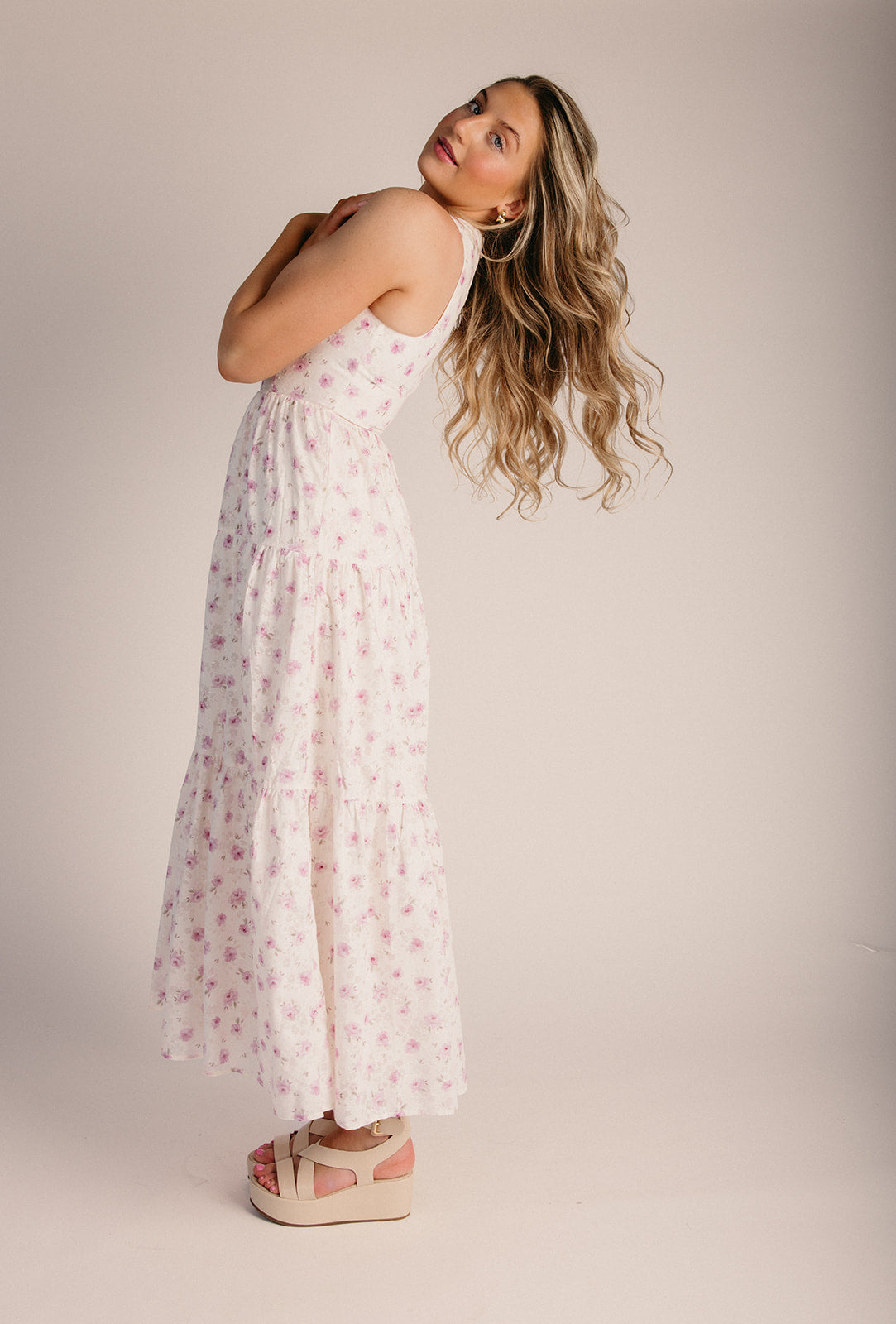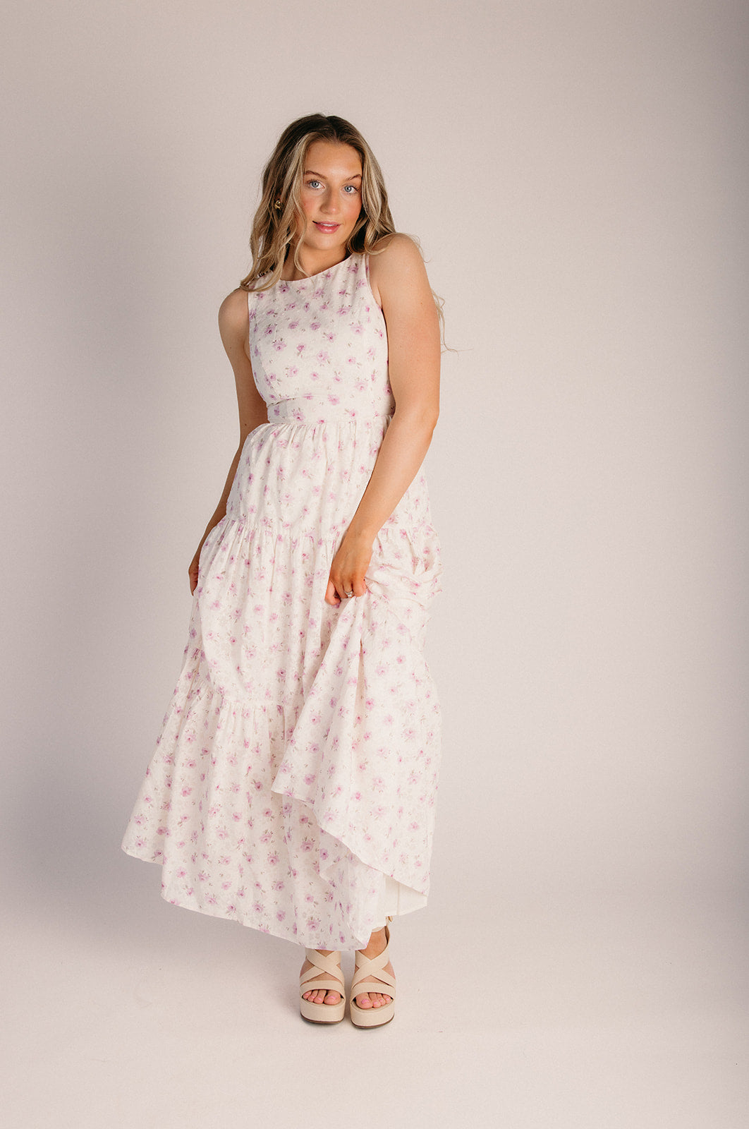 The Tosco Delicate Floral Maxi Dress in Ivory + Purple