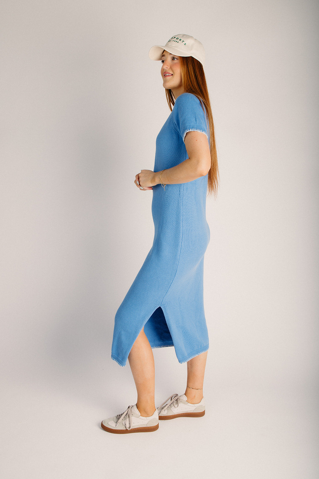 The Wilmer Stitch Detail Midi Sweater Dress in Blue + White