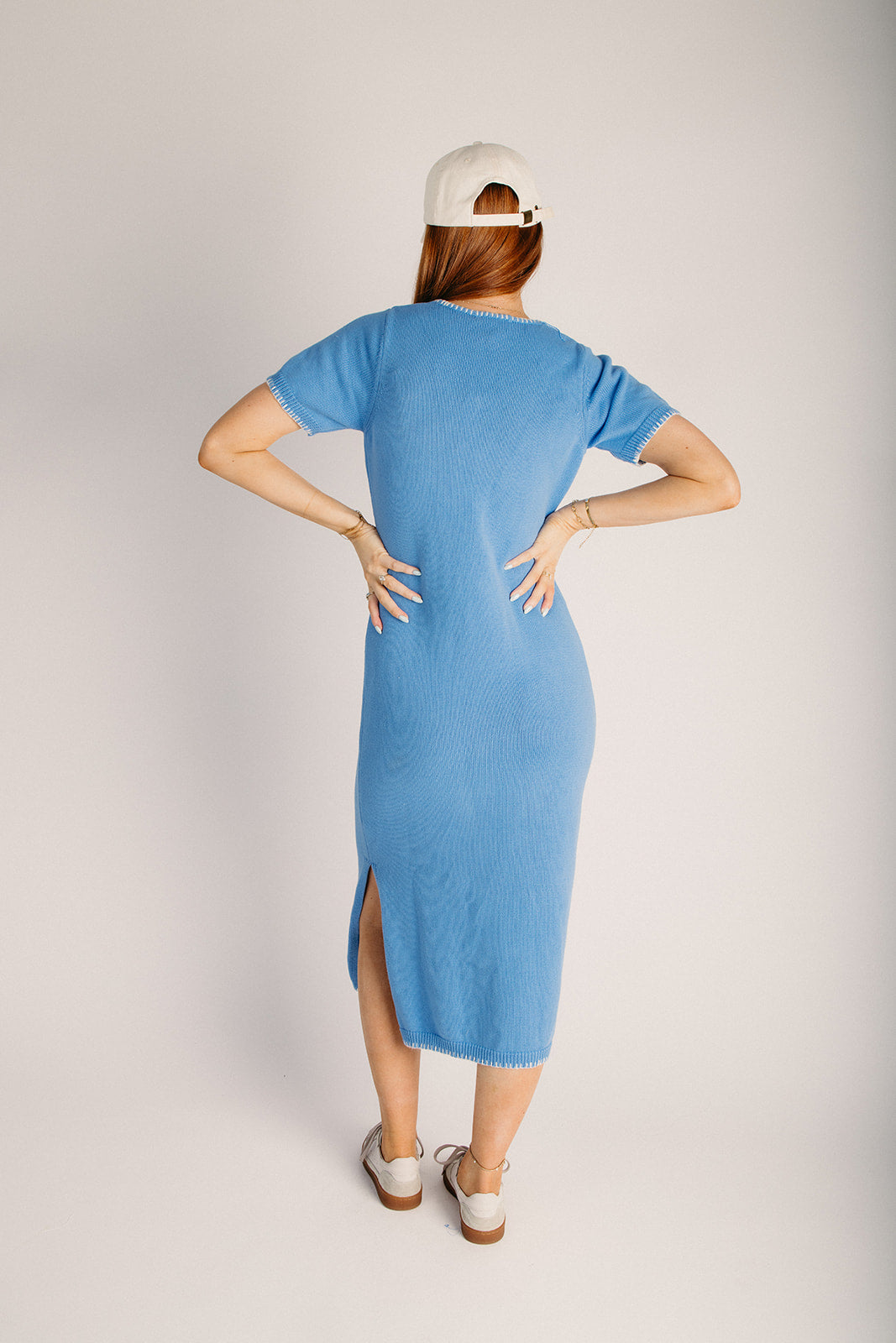 The Wilmer Stitch Detail Midi Sweater Dress is your new go-to for effortless style. This charming blue and white midi features eye-catching stitch detailing that adds personality to every outfit. Perfect for layering on cooler days or wearing solo when the weather cooperates, it's cozy enough for casual hangouts yet polished enough for brunch dates. The midi length keeps things sophisticated while the playful color combo keeps things fun. Slip it on and feel instantly put-together.