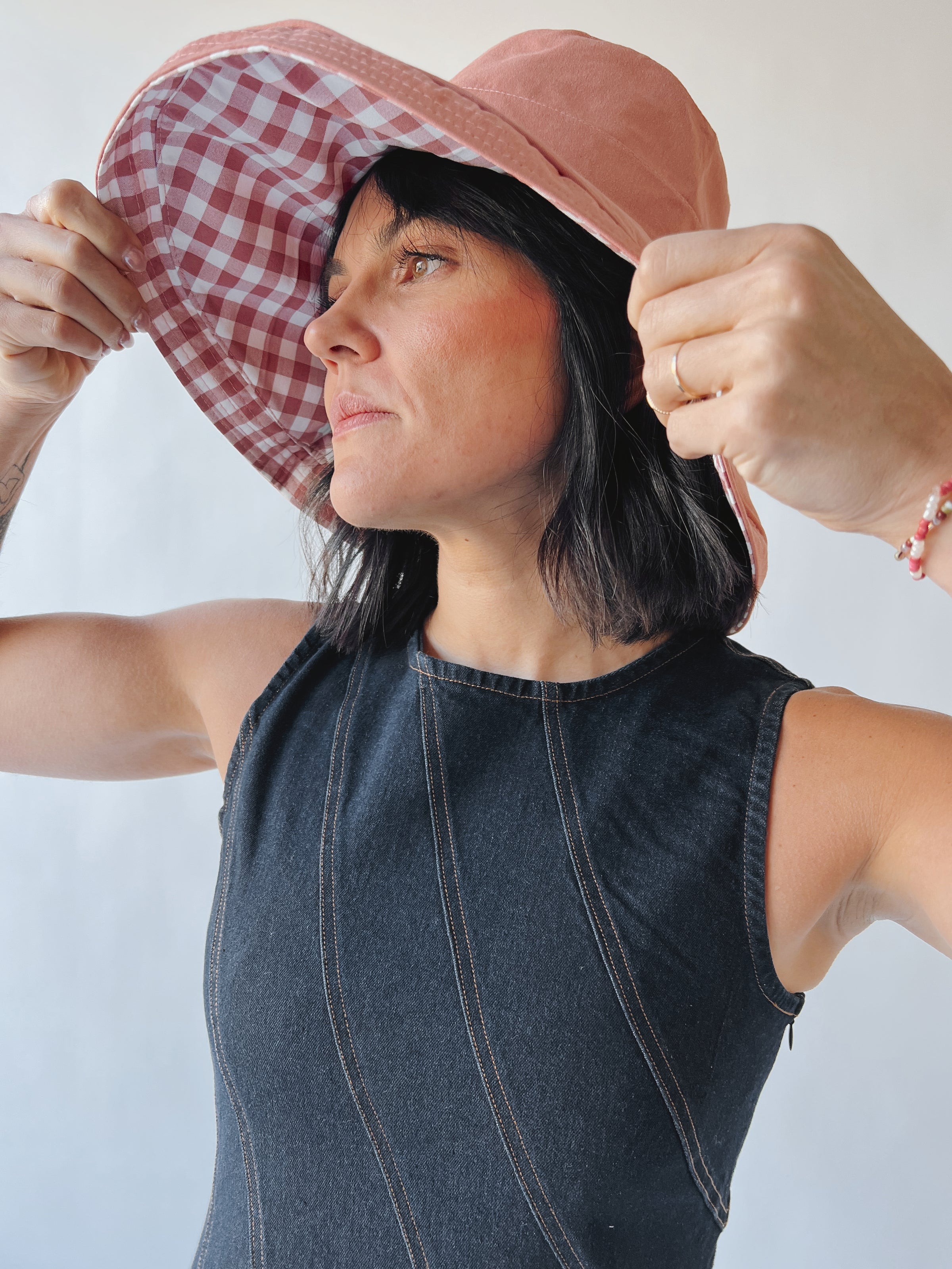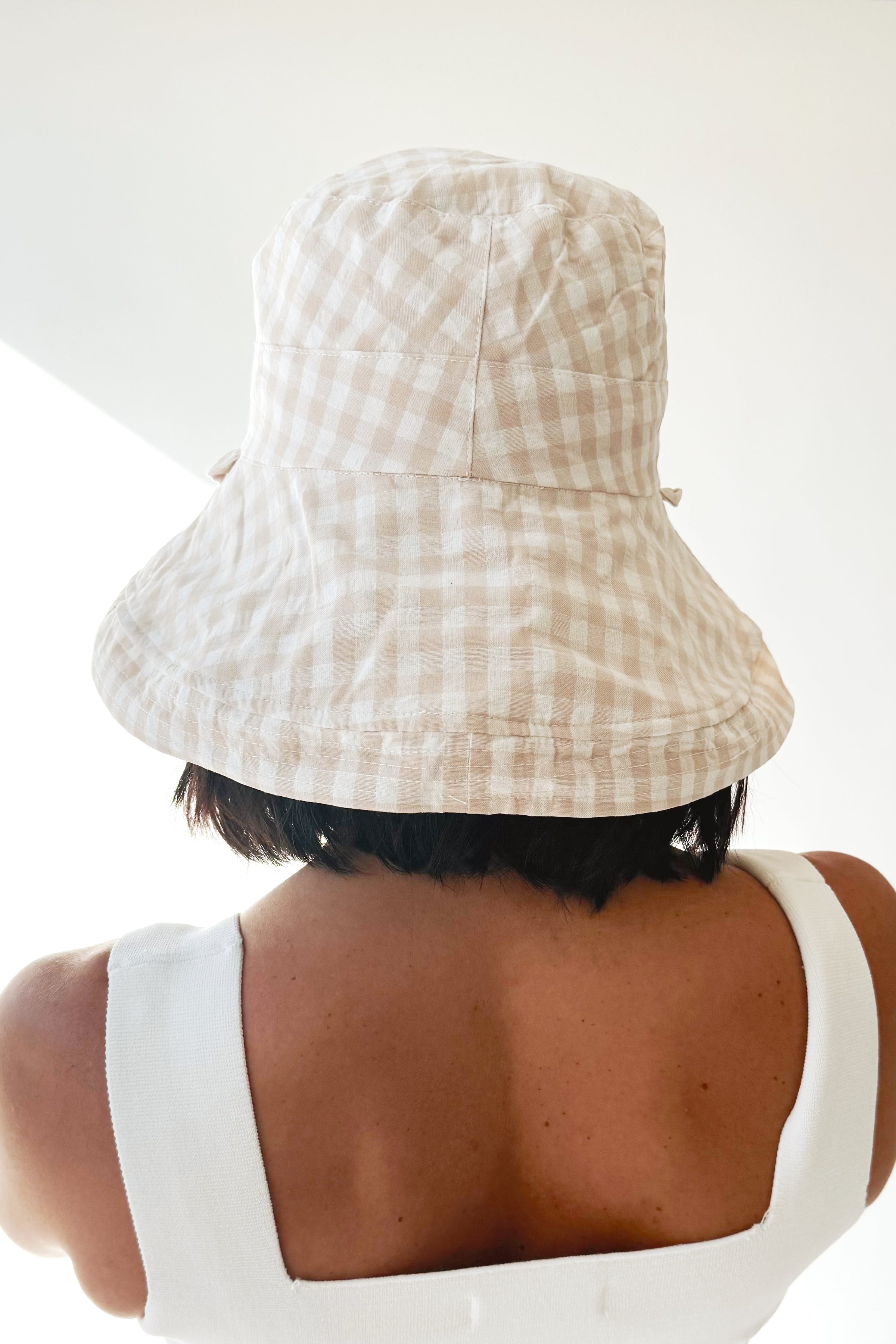 Elevate your summer style with our Women's Reversible Checkered Bucket Hat. This hat is a versatile and practical accessory for sunny days. With its reversible design, you can switch between a solid beige look for a minimalist vibe or a classic checkered pattern to add a touch of retro charm. Material: * 100% Polyamide