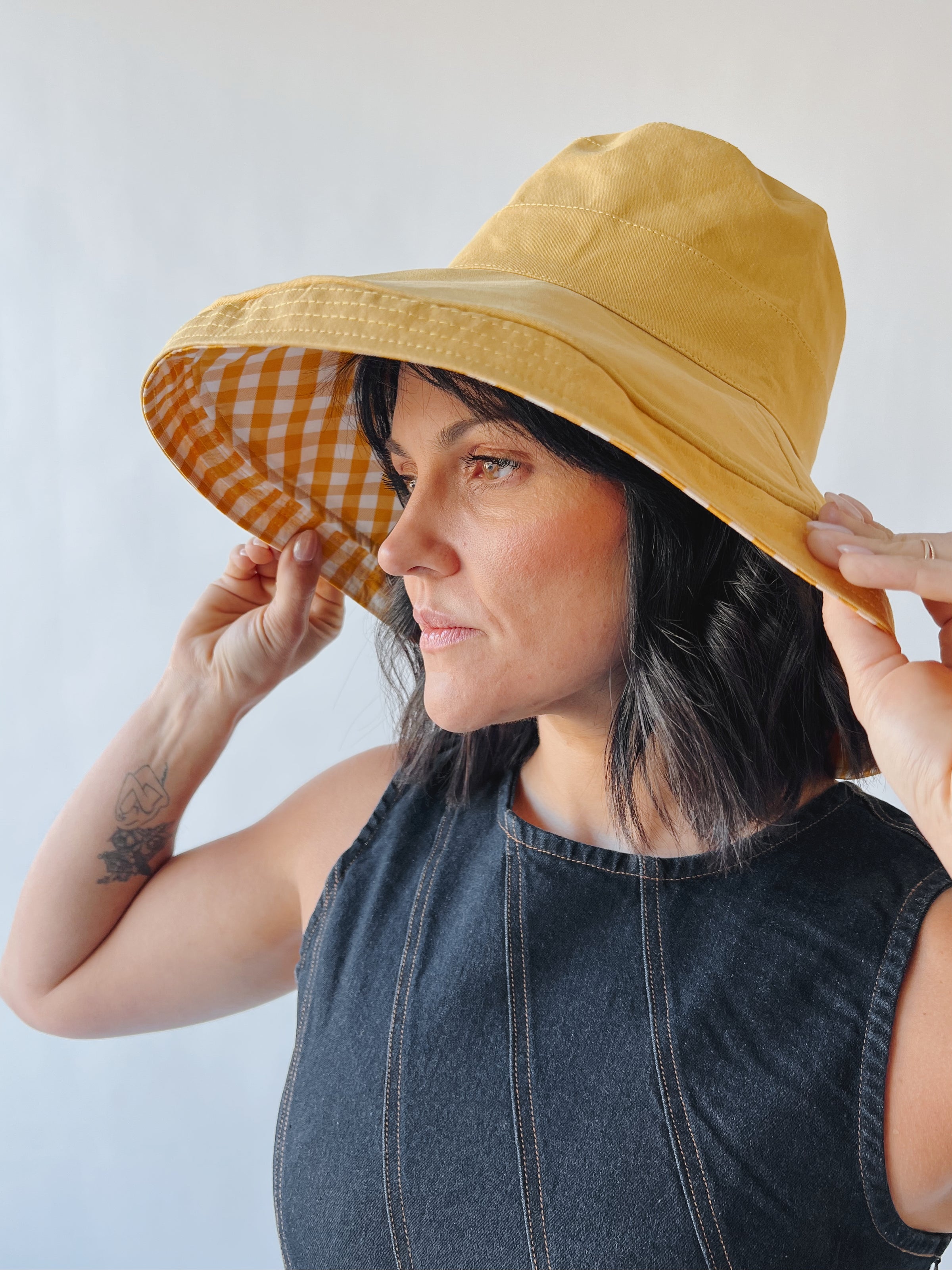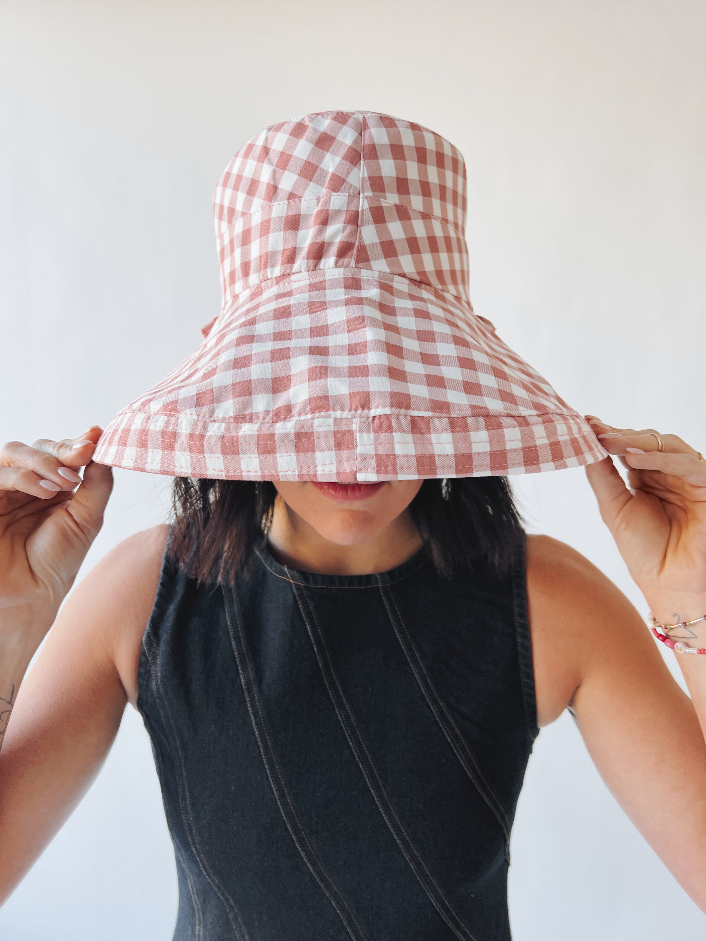 AK Brand: Women's Reversible Checkered Bucket Hat with Chin Strap (SHIPS IN 2 WEEKS)
