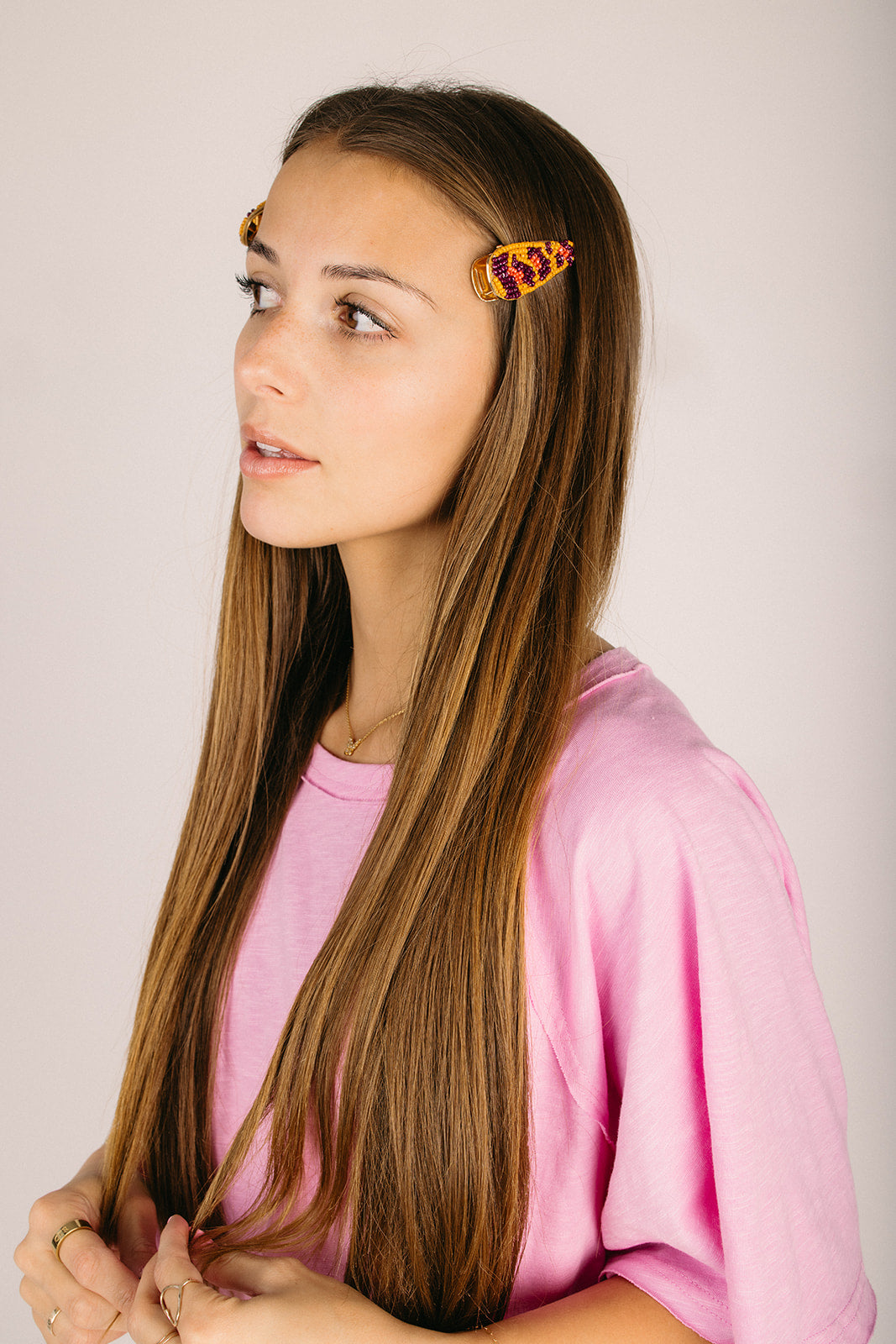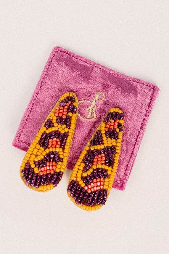Elevate your everyday styling with these beaded leopard hair clips in this bright Summery palette. Add a splash of adventure and go wild! You were born to stand out from the crowd. Hand made in India, these come on a sumptuous velvet card, making this the perfect gift this party season. 100% Modal fabric with metal shell. Dry Clean only.