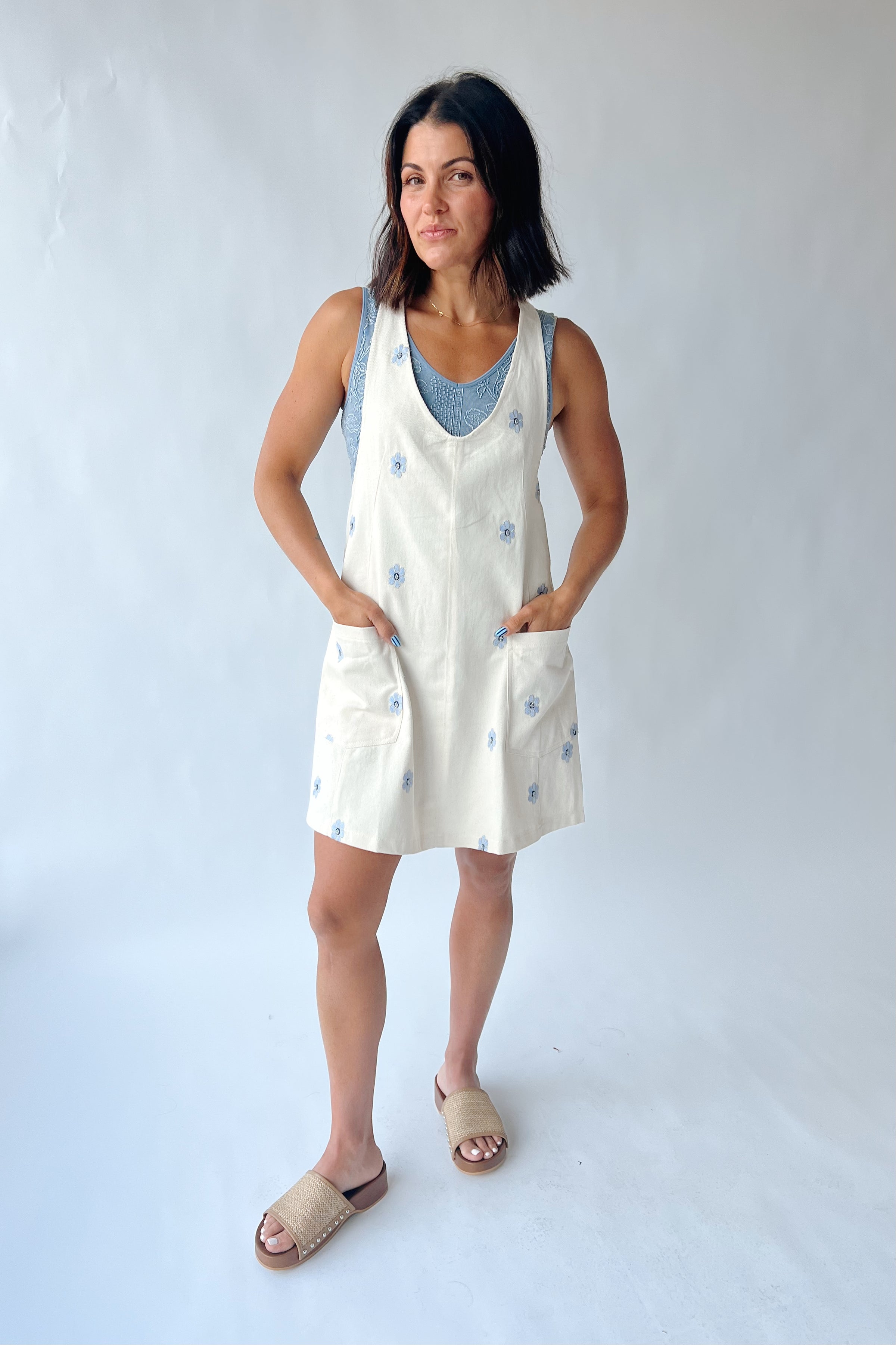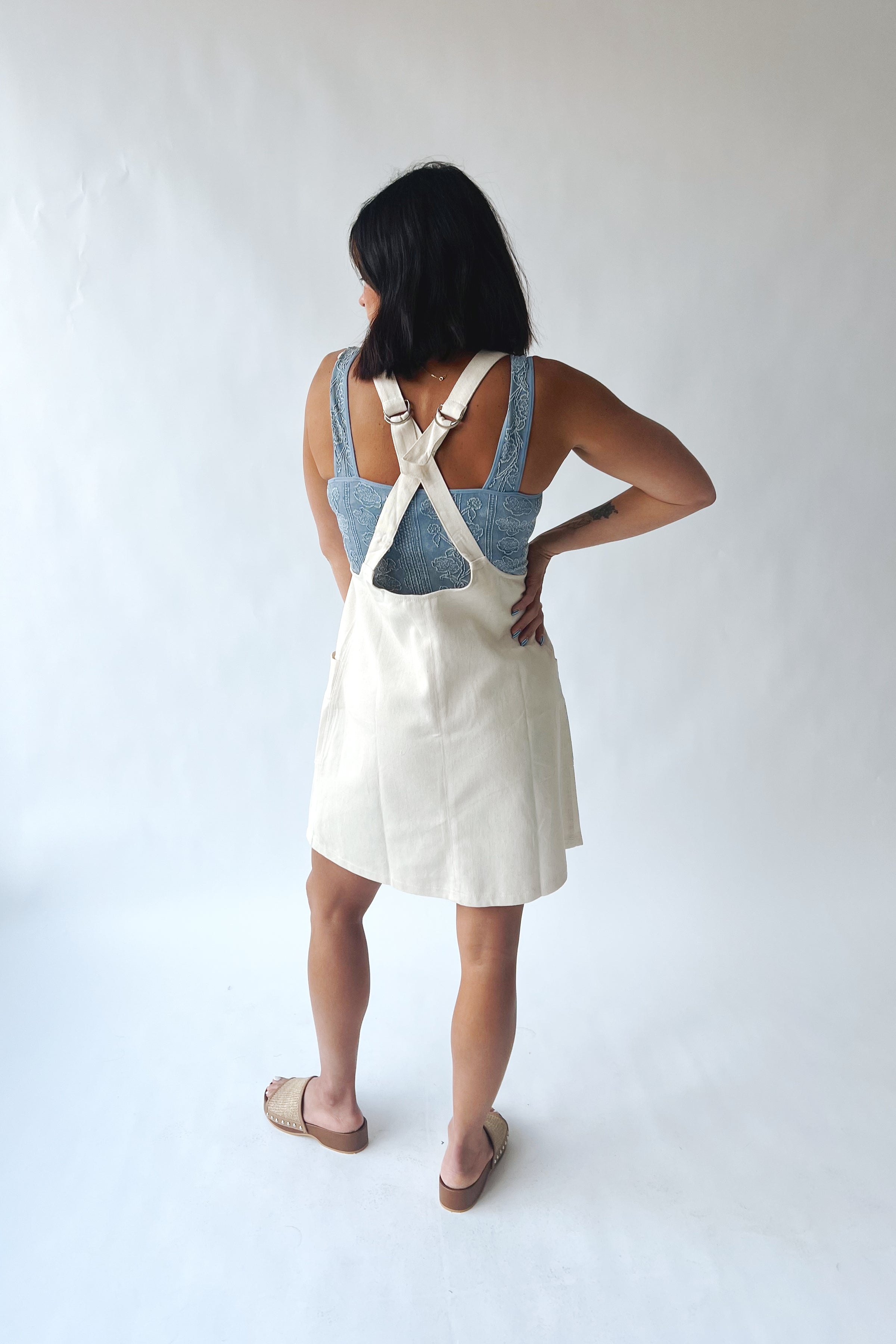 Introducing the Barbosa Floral Overall Dress in Oatmeal — your new go-to for effortless charm! This playful piece combines vintage-inspired overall styling with delicate floral details, perfect for everything from farmers market runs to weekend adventures. The soft 100% cotton construction keeps you comfortable all day long, while the relaxed fit lets you move freely. Whether you're channeling your inner gardener or just embracing that cozy, carefree vibe, this dress is ready to become your favorite wardrobe staple. Pair it with sneakers for casual cool or dress it up with sandals for a sweet, unexpected twist.