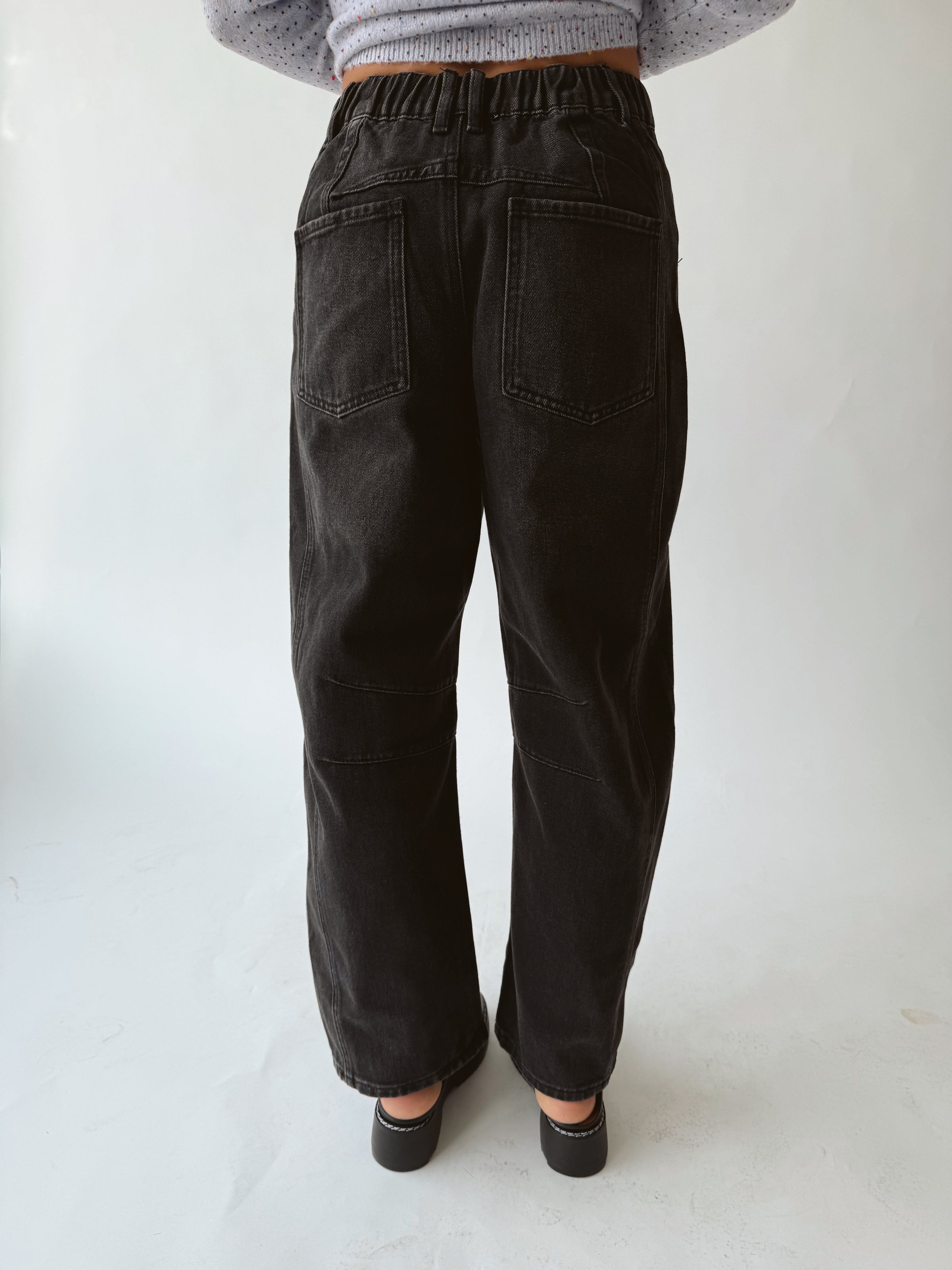 The Brianna Embroidered Barrel Jean in Faded Black