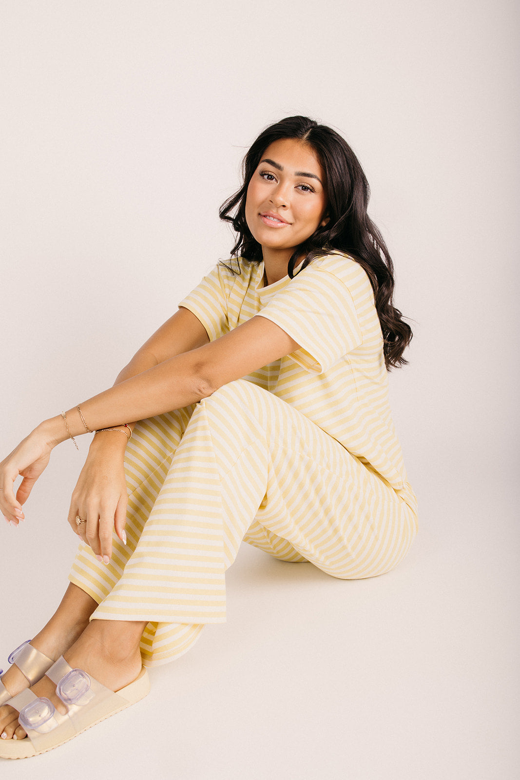 Slip into pure comfort with The Chalamet Striped Lounge Pant in Butter. These effortlessly chic pants feature classic stripes that add visual interest while the soft, buttery fabric keeps you cozy all day long. Perfect for lounging at home, running errands, or those days when style shouldn't be sacrificed for comfort. Pairs perfectly with The Timothee Striped Lounge Tee in Butter!