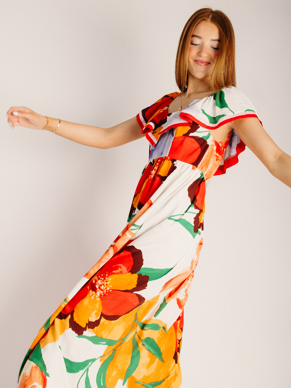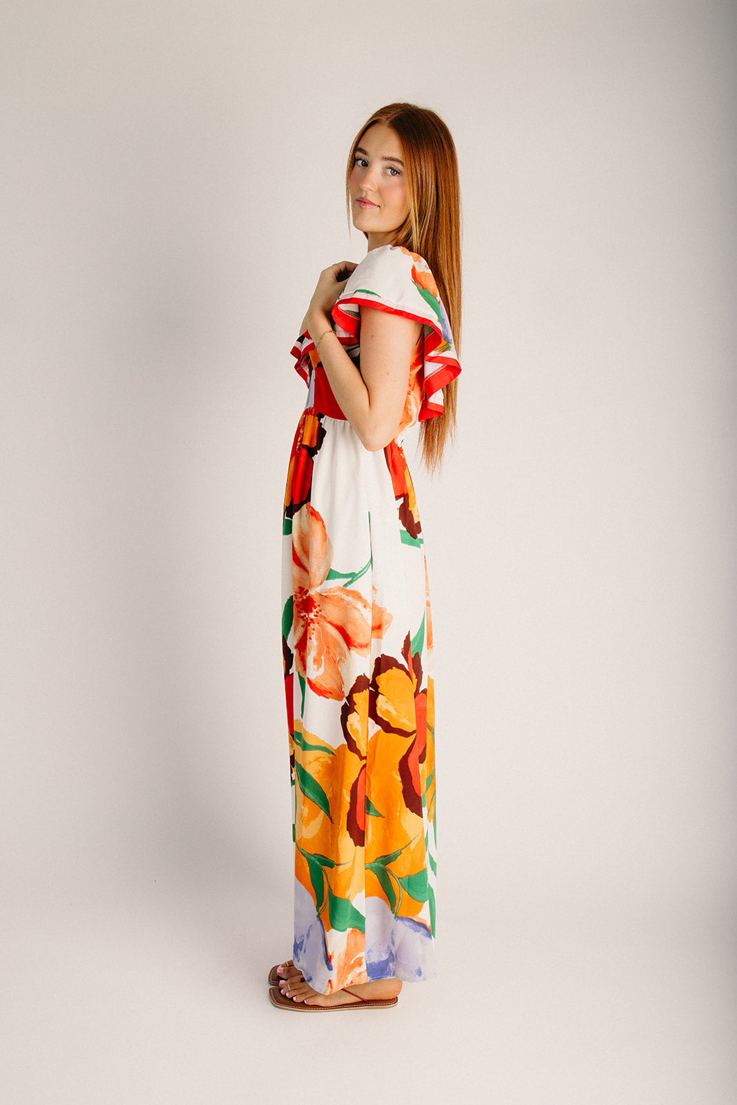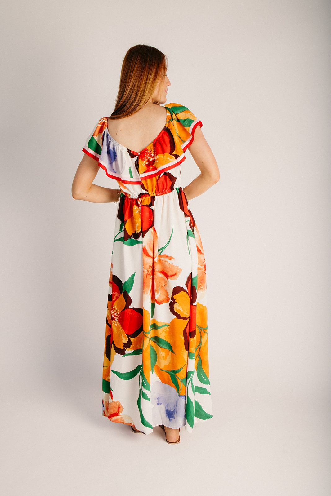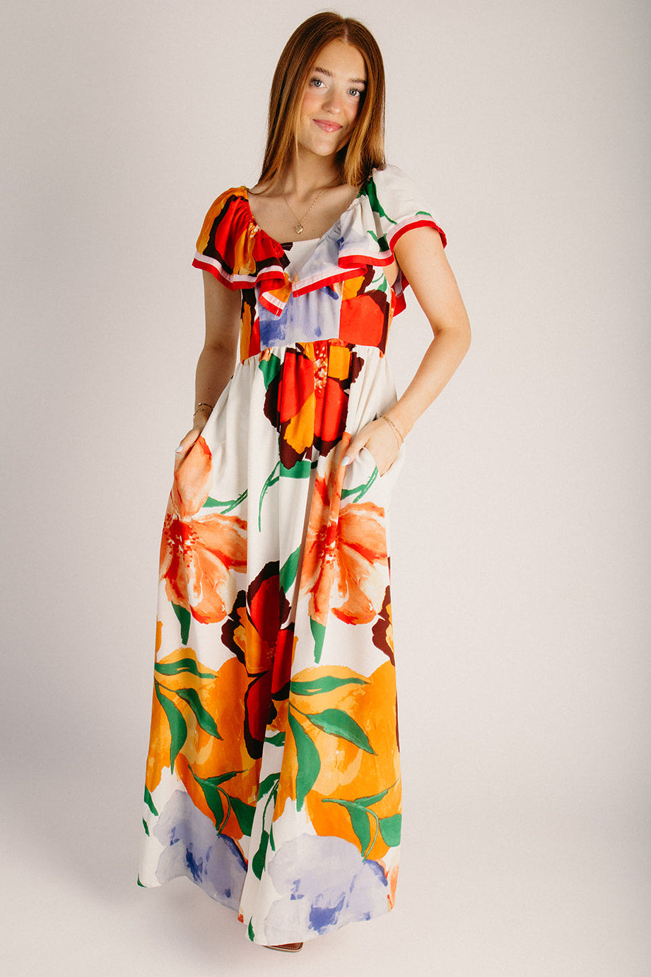 The Dummar Floral Printed Maxi Dress in Hibiscus Multi