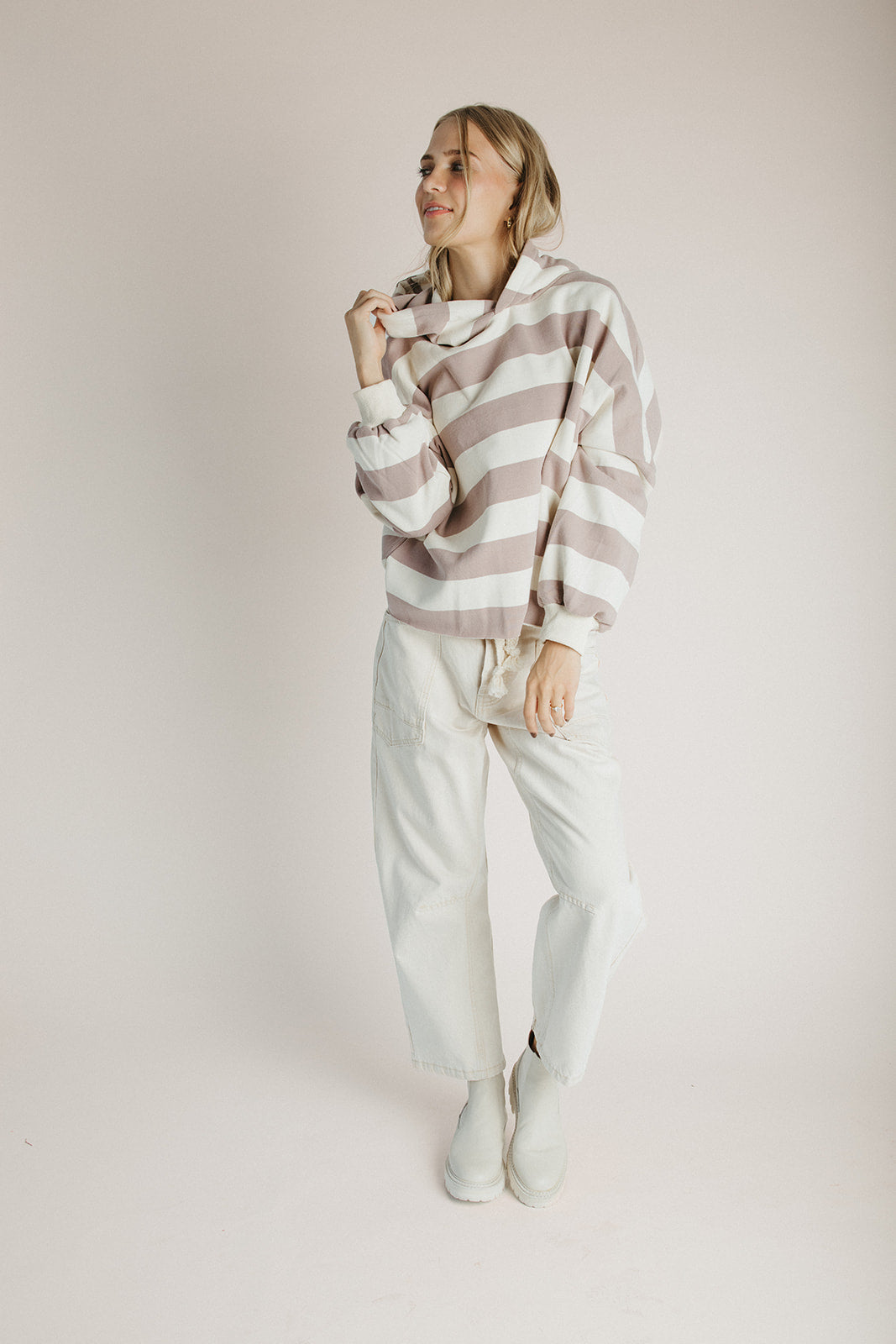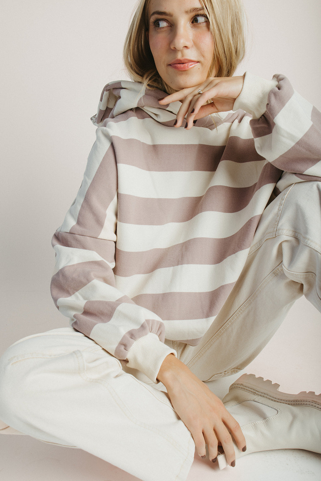 Cozy meets cute in the Everly Striped Hoodie, featuring soft taupe and cream stripes that add a touch of charm to your casual look. Perfect for lounging or layering, this hoodie wraps you in comfort while keeping your style effortlessly playful and fresh. Whether you're running errands or relaxing at home, its easygoing vibe makes every moment a little brighter.
