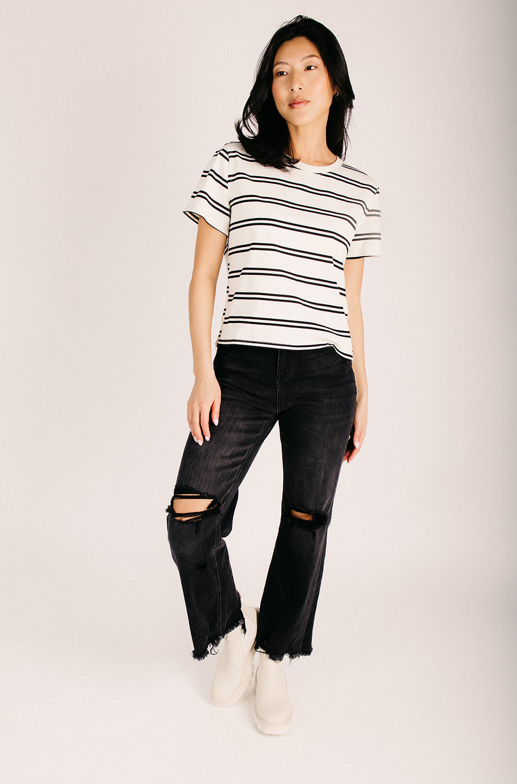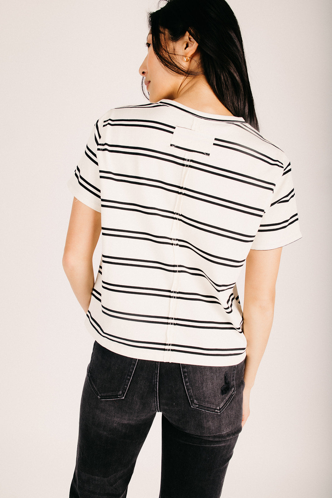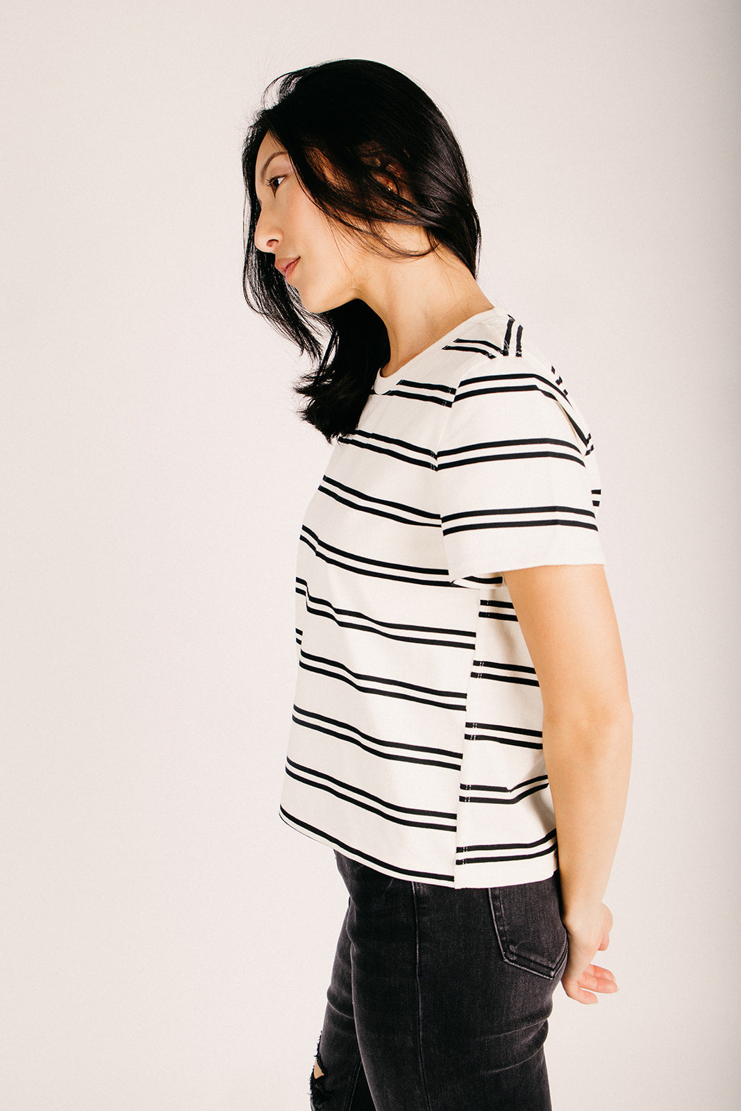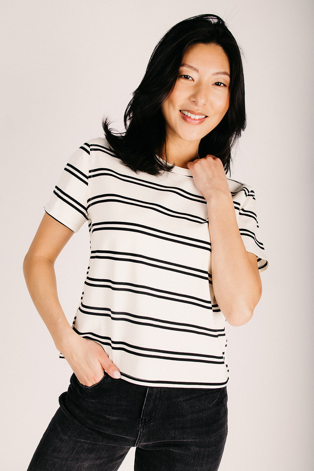 Meet your new wardrobe MVP. This striped basic tee is like the reliable friend who shows up to everything—casual coffee runs, weekend adventures, you name it. The crisp white and stripe combo keeps things fresh and fun, while the relaxed fit means you can move freely without a care. Layer it, tuck it, or wear it solo. Simple, timeless, and endlessly wearable—this is the tee that does it all.