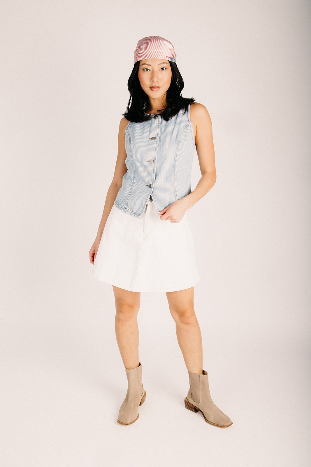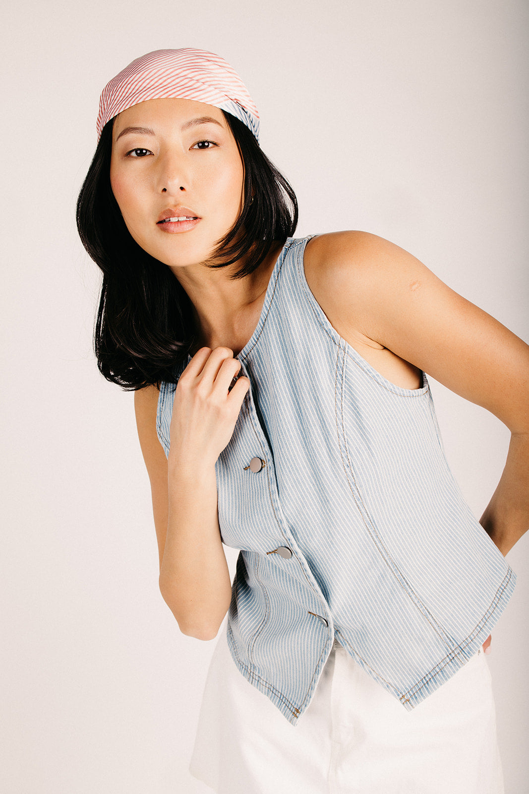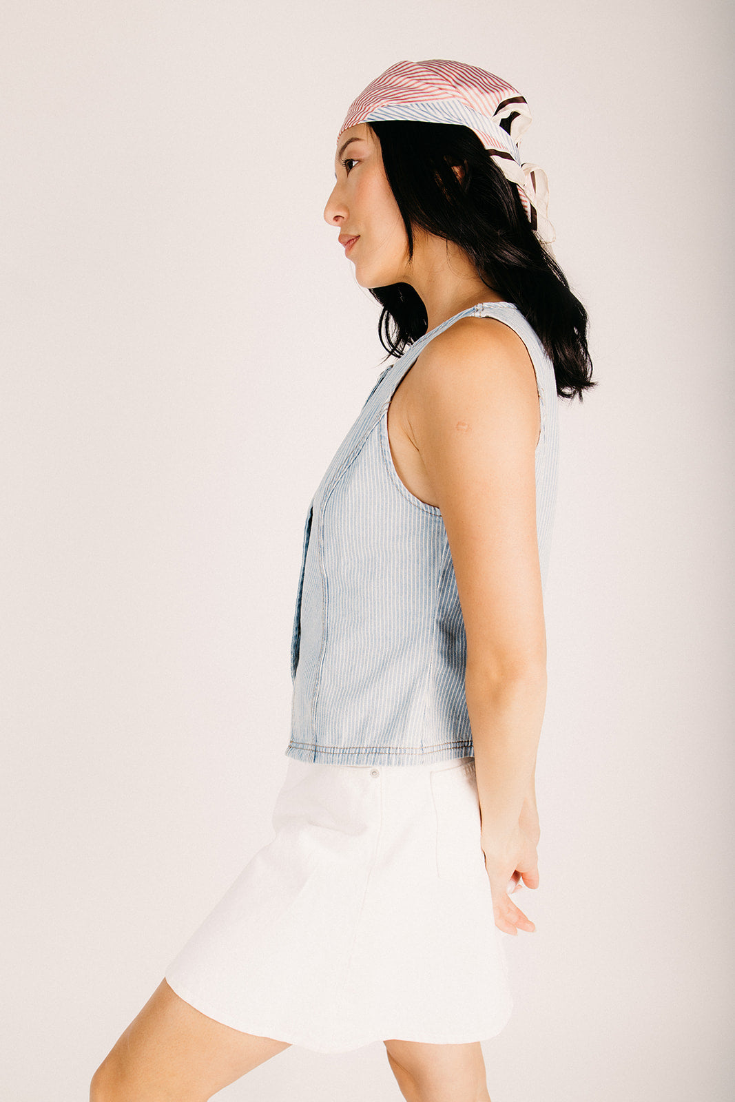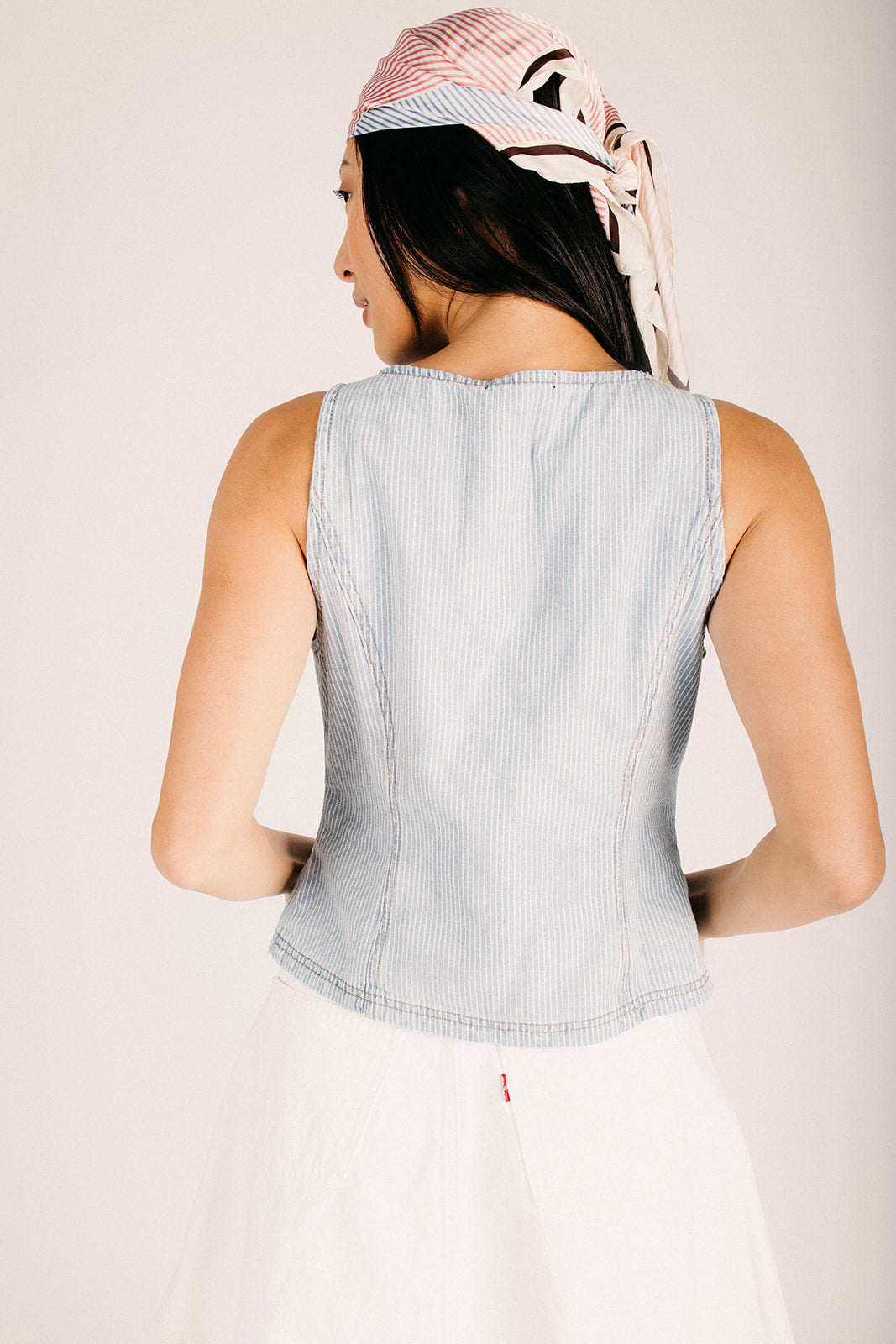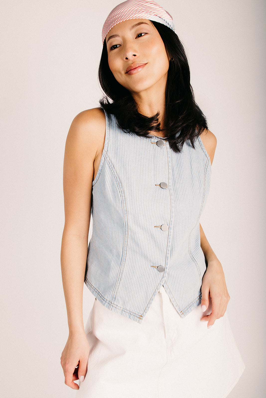 The Milliron Pinstripe Button-Up Vest in Light Denim