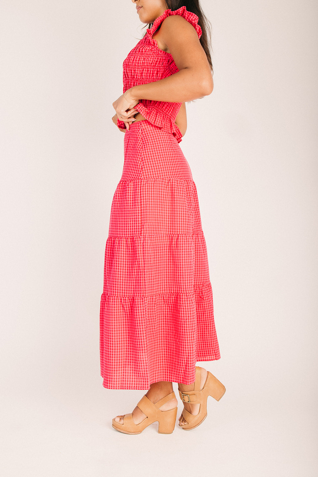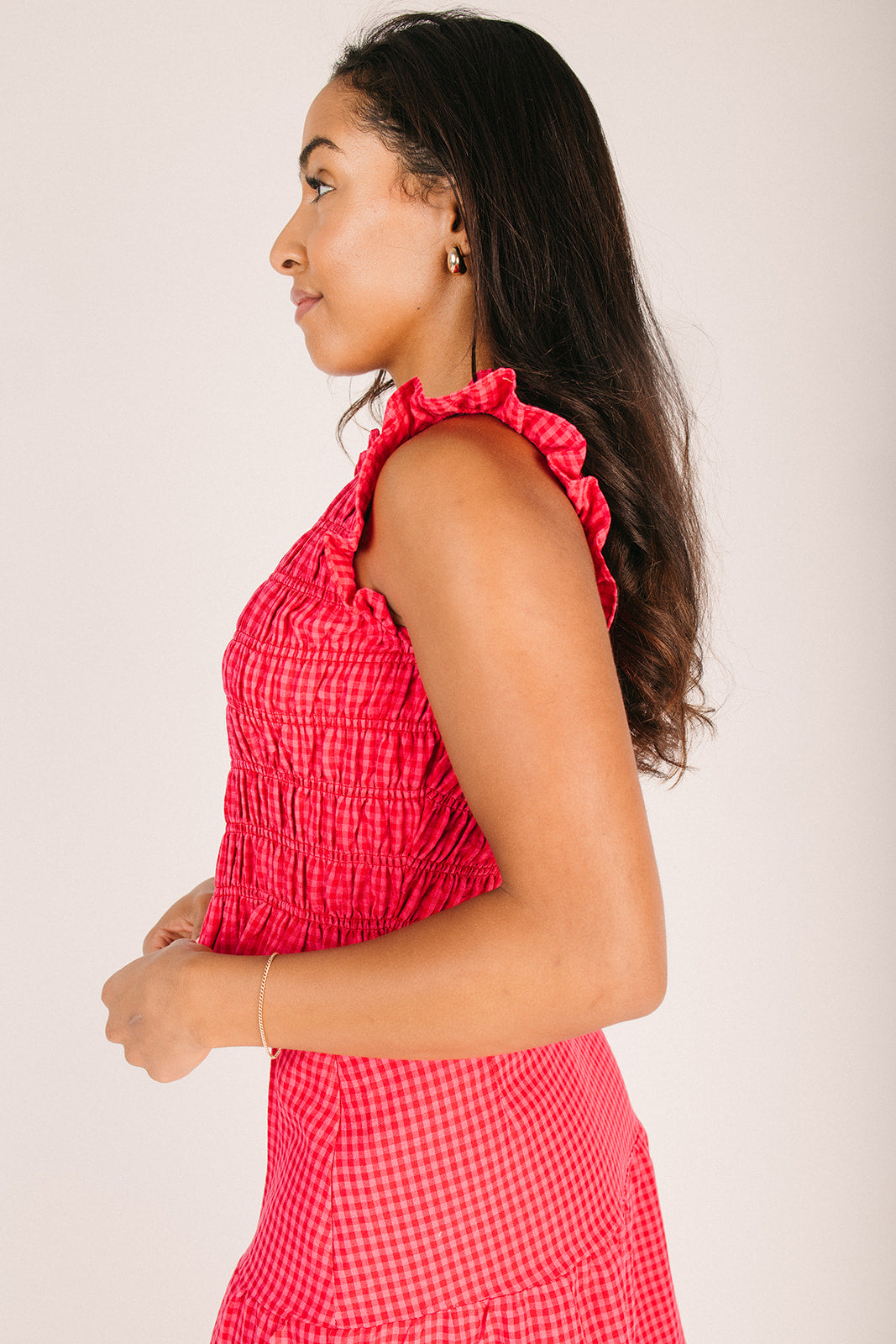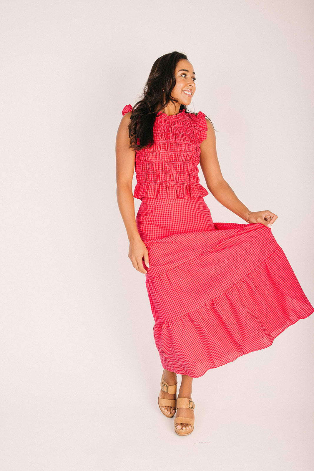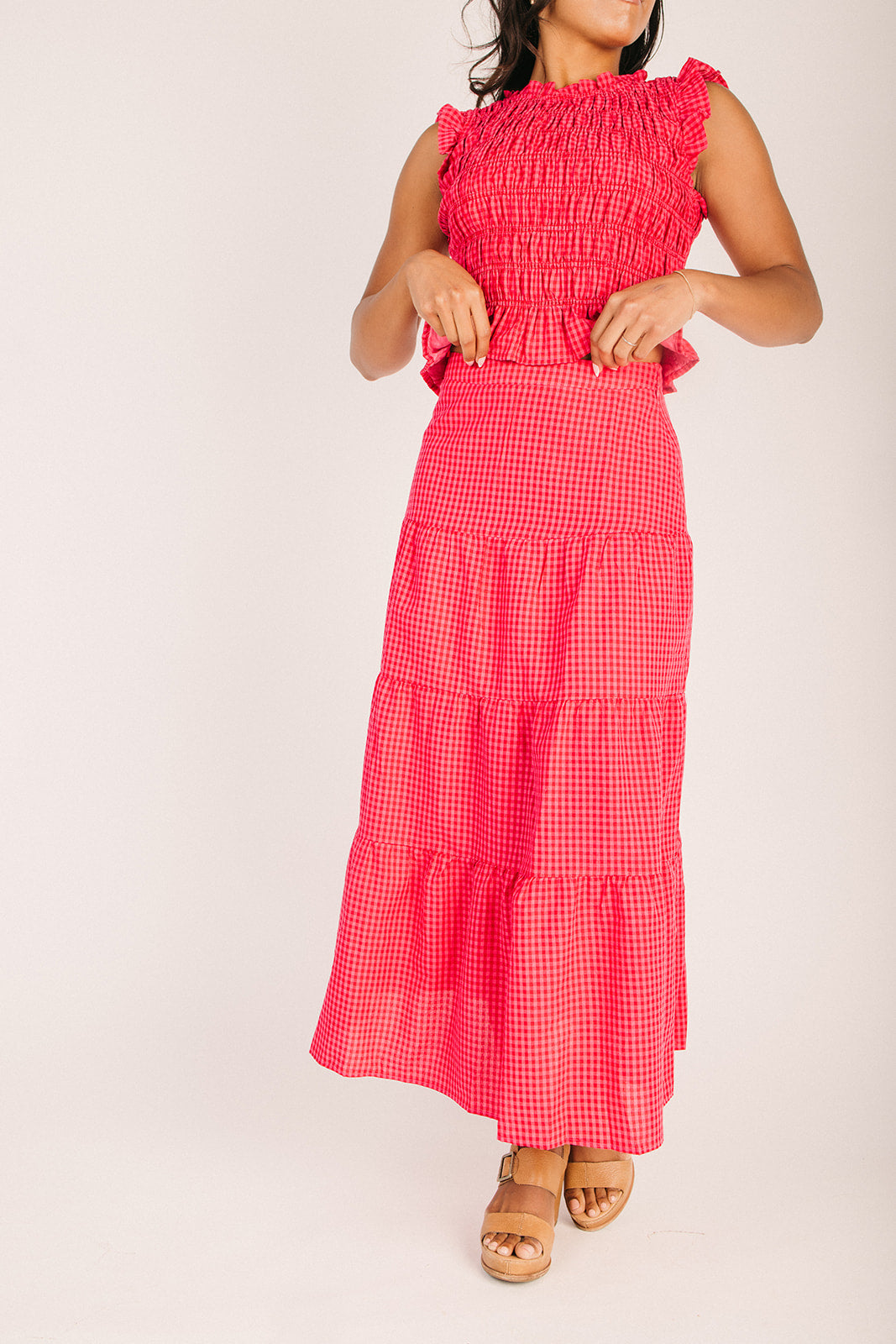 The Warnick Gingham Smocked Tank in Red
