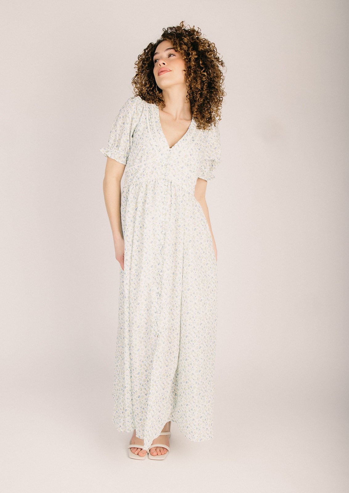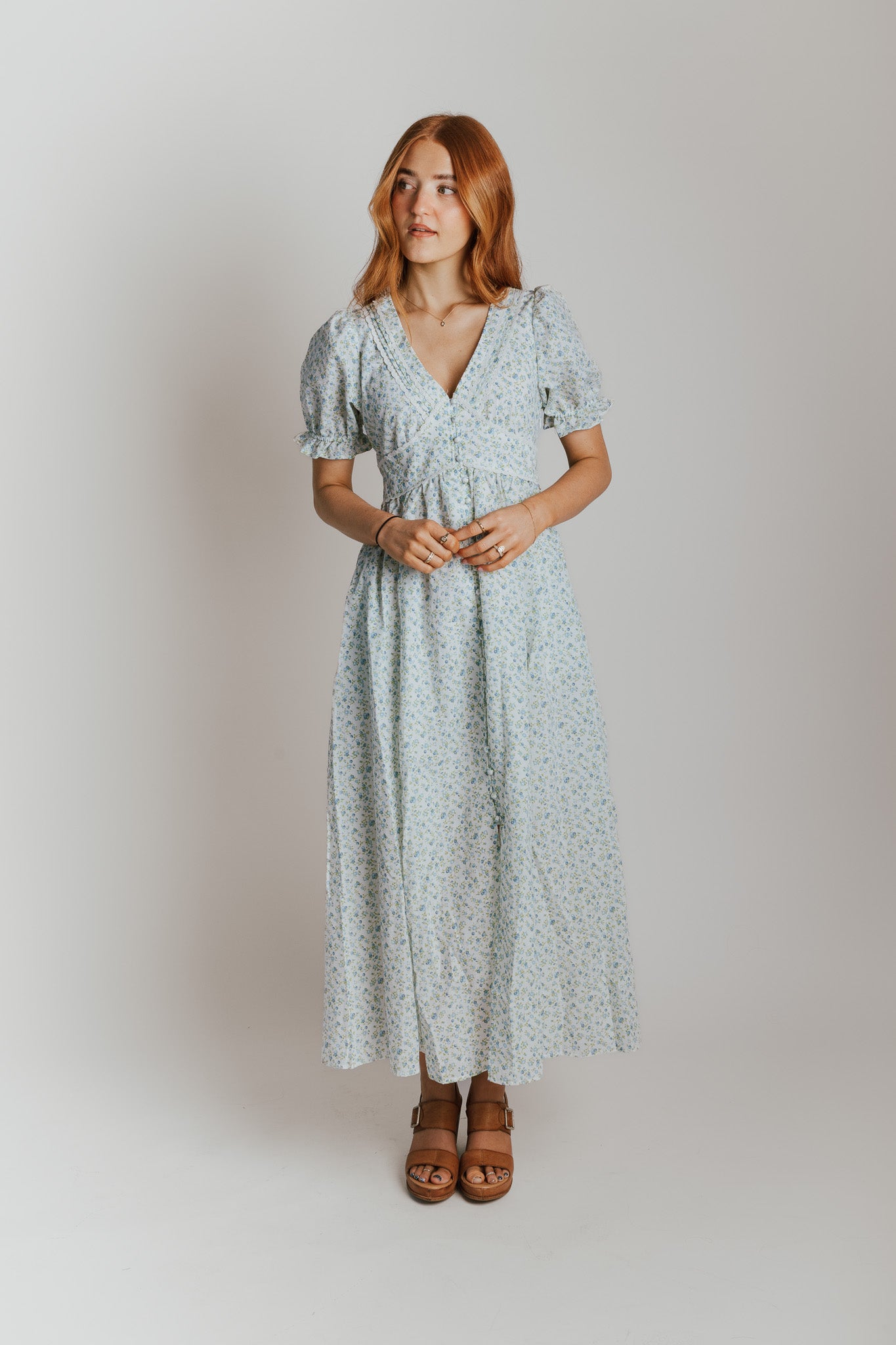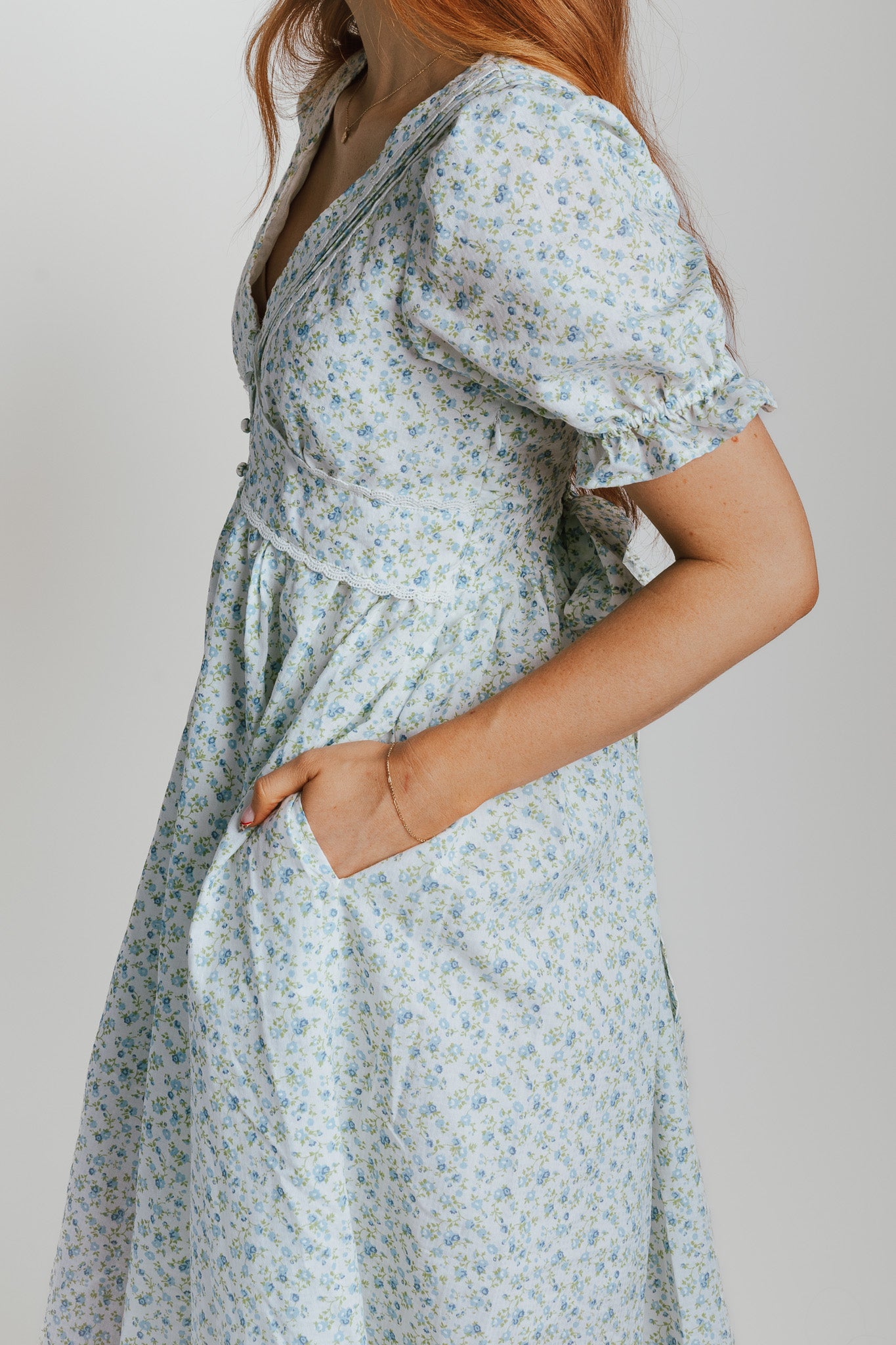 The Babitz Floral Button-Up Dress in Cornflower Blue