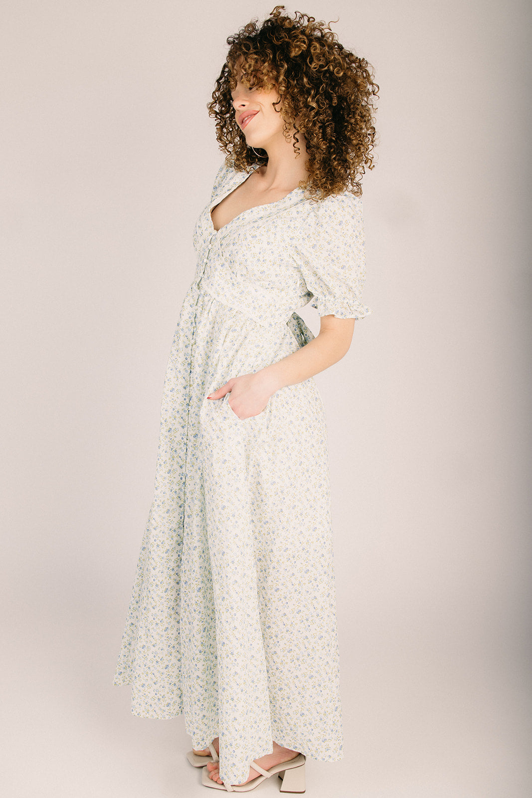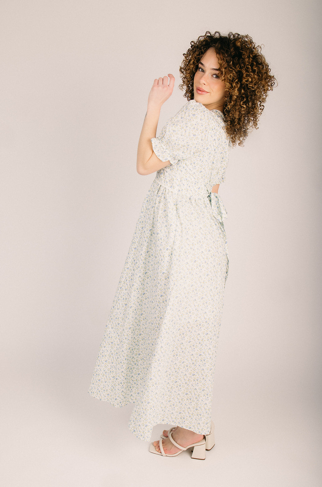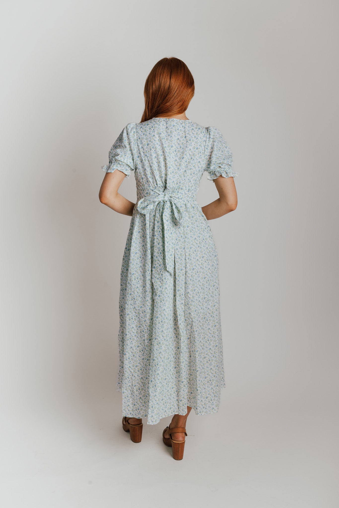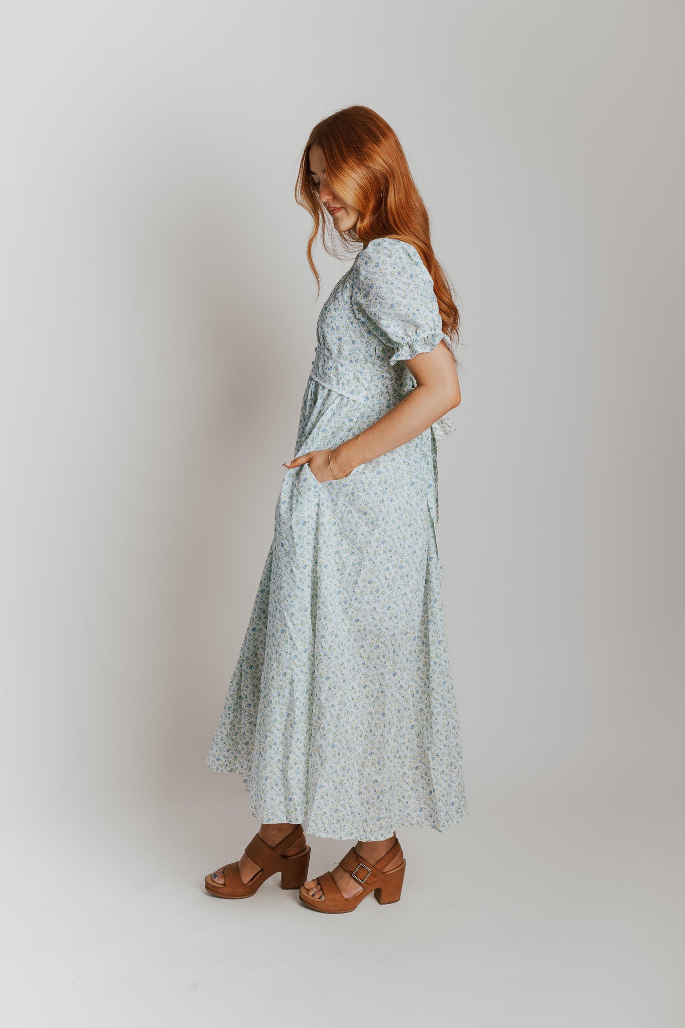 The Babitz Floral Button-Up Dress in Cornflower Blue