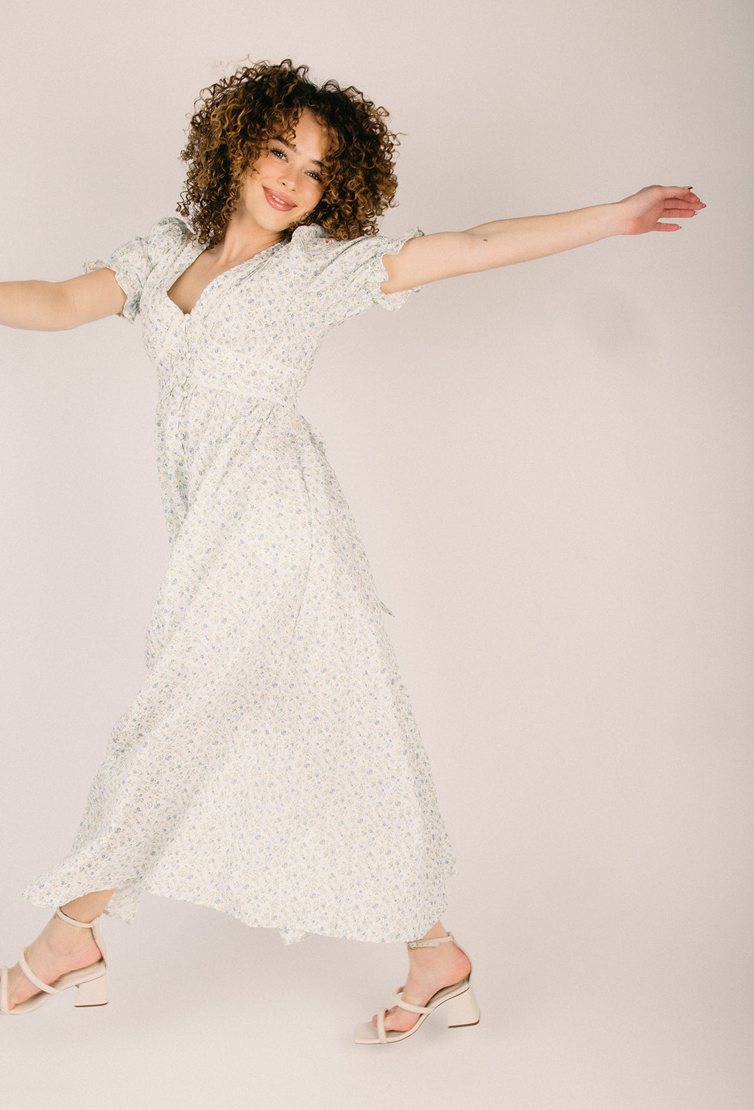 Bloom into your day with The Babitz Floral Button-Up Dress in Cornflower Blue. This charming piece features delicate florals dancing across a serene cornflower backdrop, perfect for effortless style that works from brunch to evening plans. The classic button-up silhouette offers versatility—dress it up with heels or keep it casual with sneakers. Soft, breathable fabric ensures all-day comfort, while the timeless floral print brings a touch of garden-fresh elegance to your wardrobe. A wardrobe essential that proves florals are always in season.