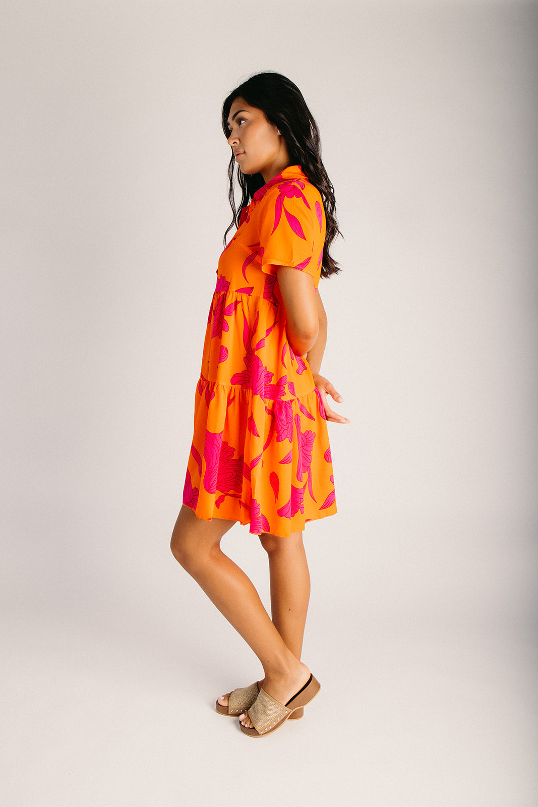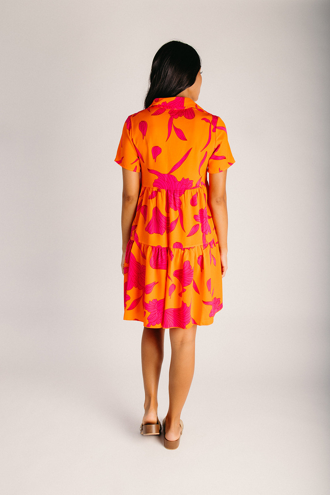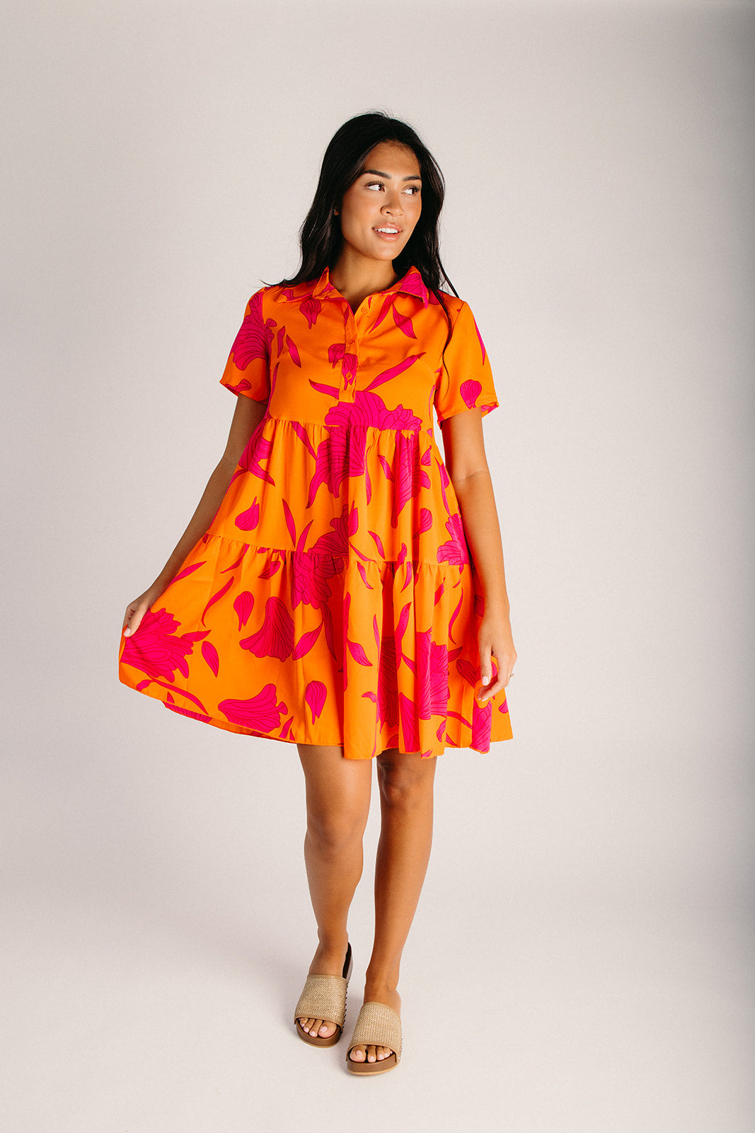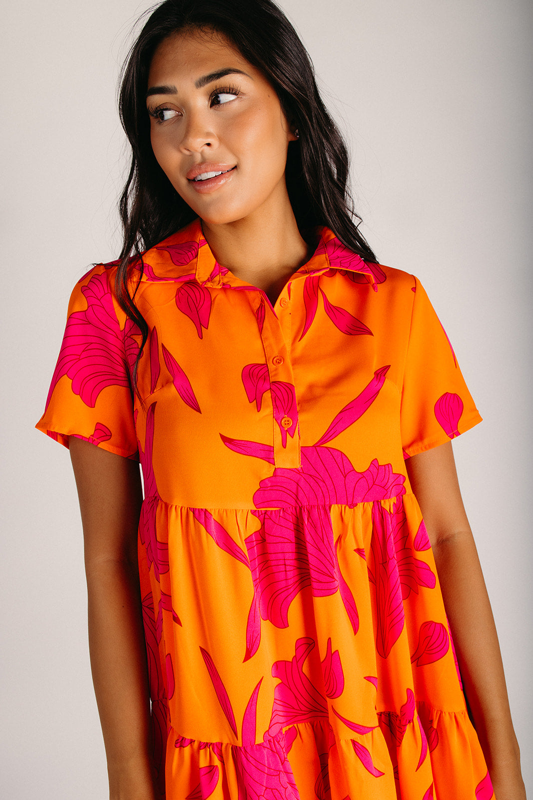 The Lexington Floral Button-Up Dress in Orange + Pink