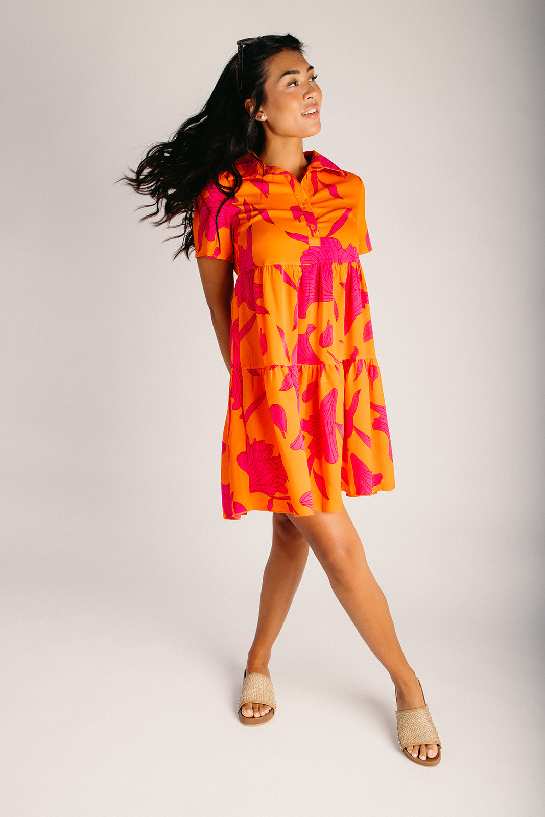 Brighten your wardrobe with The Lexington—a cheerful button-up dress that's equal parts playful and polished. The vibrant orange and pink floral print brings instant joy to any day, while the classic button-front silhouette keeps things timeless. Whether you're dressing up for brunch or keeping it casual, this dress is your new go-to for effortless style with a pop of color.