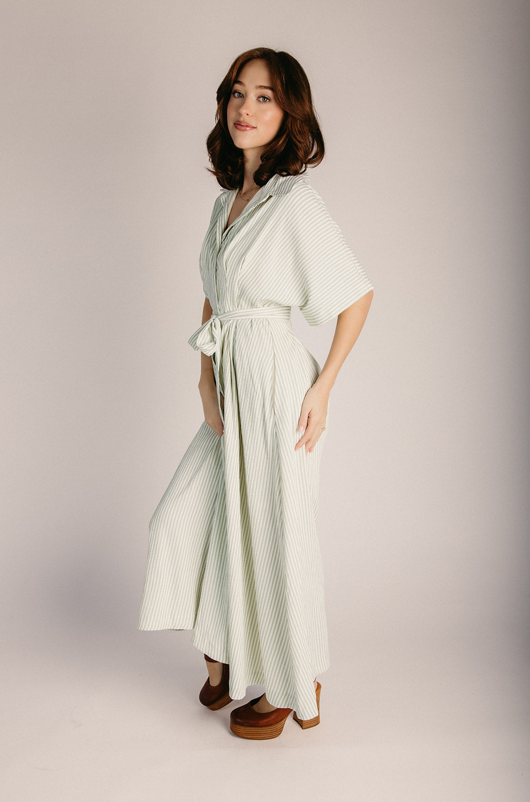 The Nisha Striped Button-Up Midi Dress in Sunset Brick is your new go-to for effortless style. This charming midi features classic vertical stripes in warm sunset brick tones that flatter every figure. The button-up front adds a touch of vintage-inspired appeal, while the relaxed fit keeps things comfortable all day long. Perfect for casual outings, weekend brunches, or dressing up with your favorite accessories. A versatile wardrobe essential that proves stripes never go out of style.