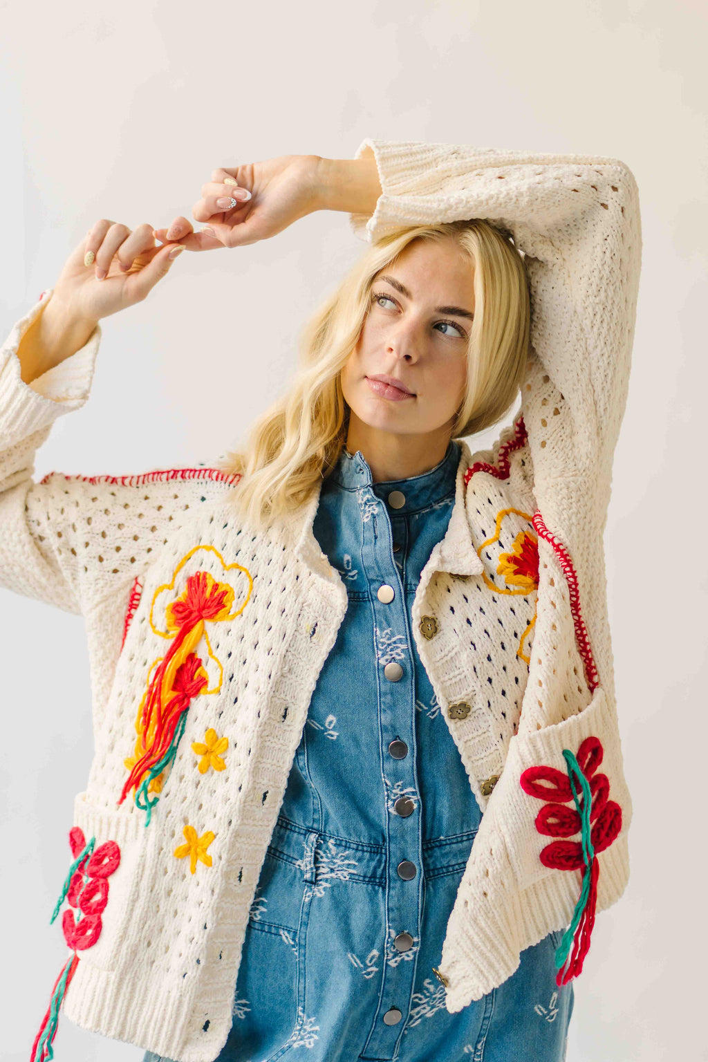 The Athena Embroidered Cardigan in Powder Cream