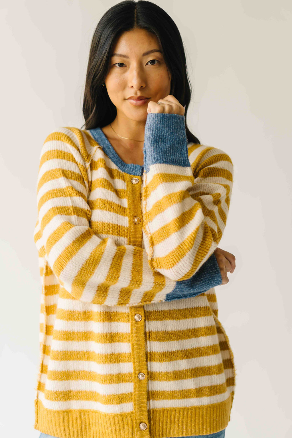 The Richardson Cardigan in Mustard Stripe