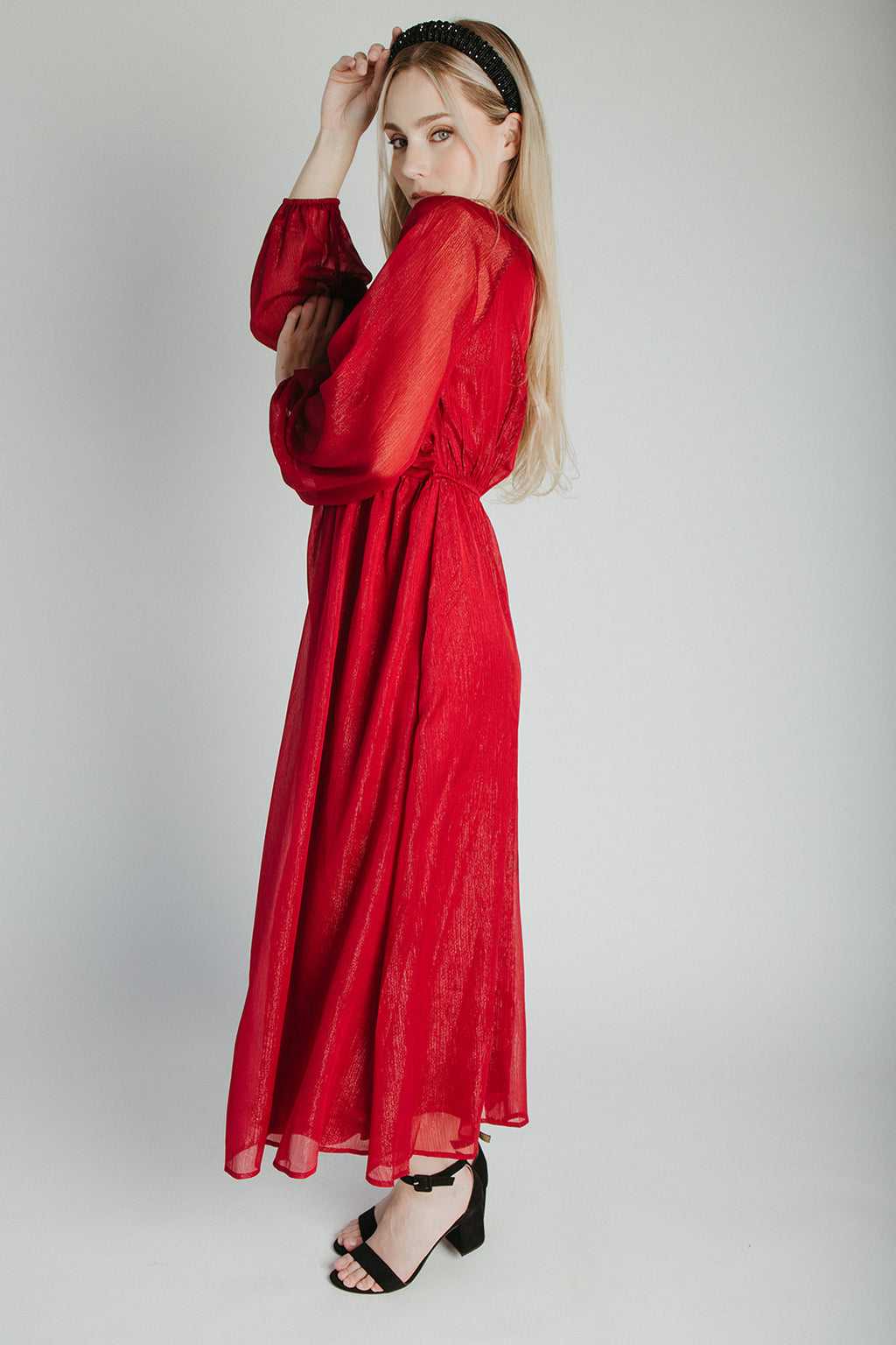 The Shayla Chiffon Maxi Dress in Red