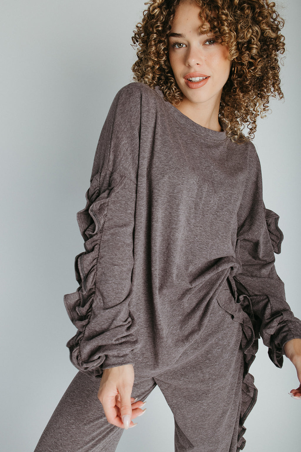 The Barger Ruffle Lounge Set in Deep Grey