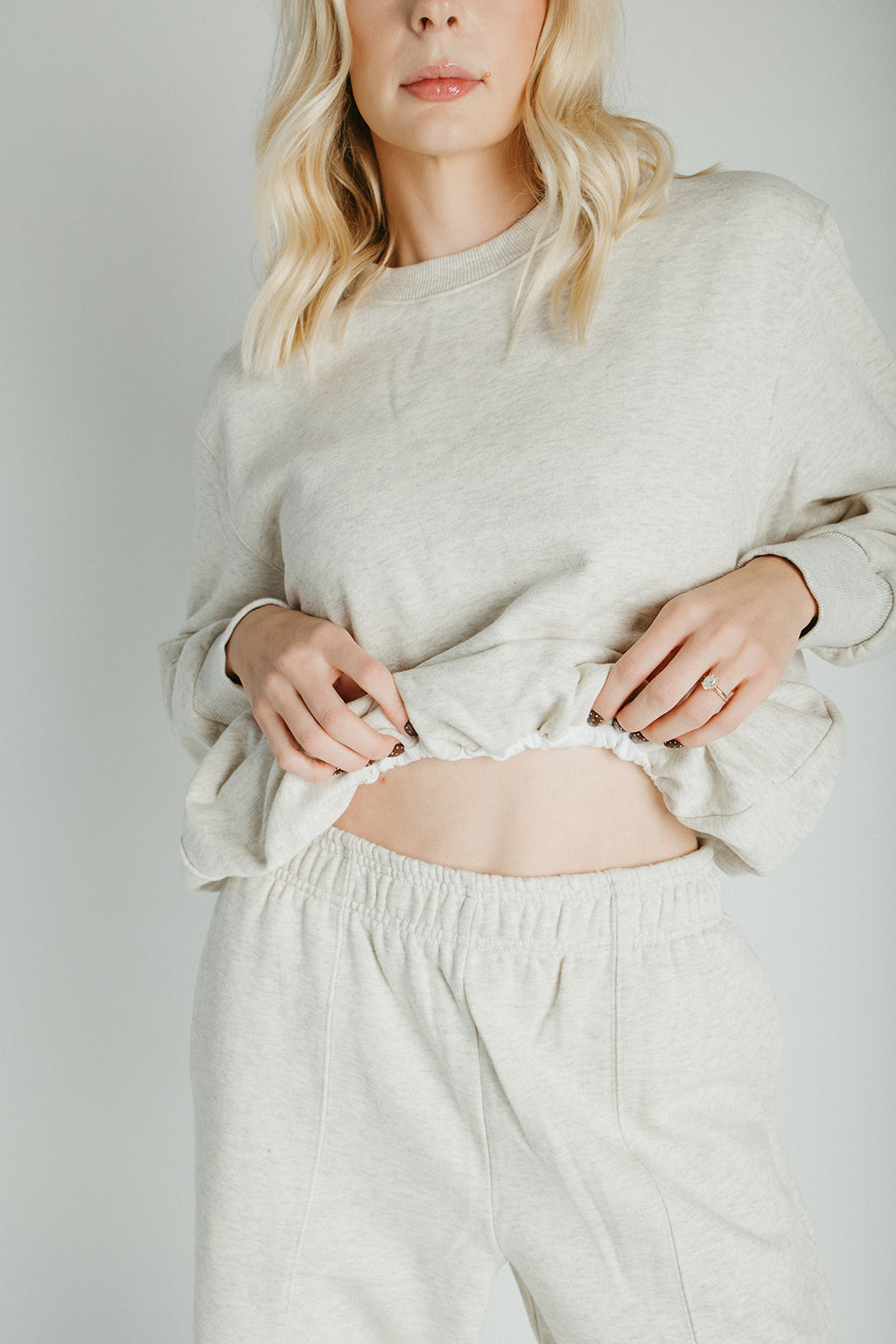 The Goldie Bubble Hem Pullover in Heathered Oat
