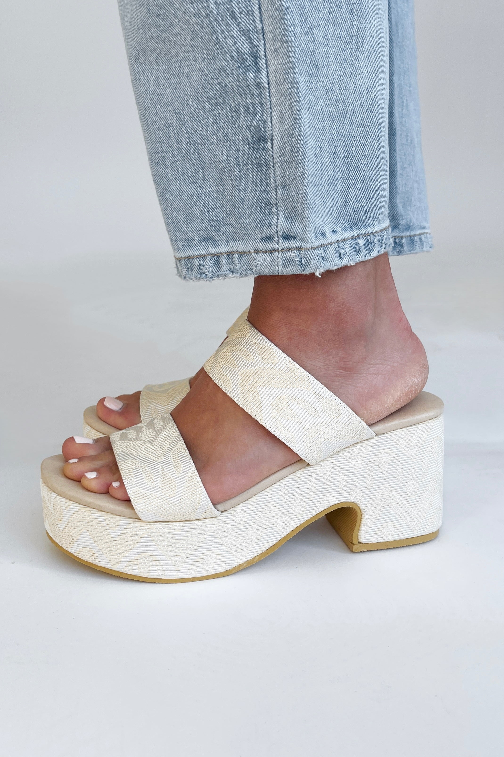 Matisse: Ocean Ave Platform Sandal in Beige Multi
