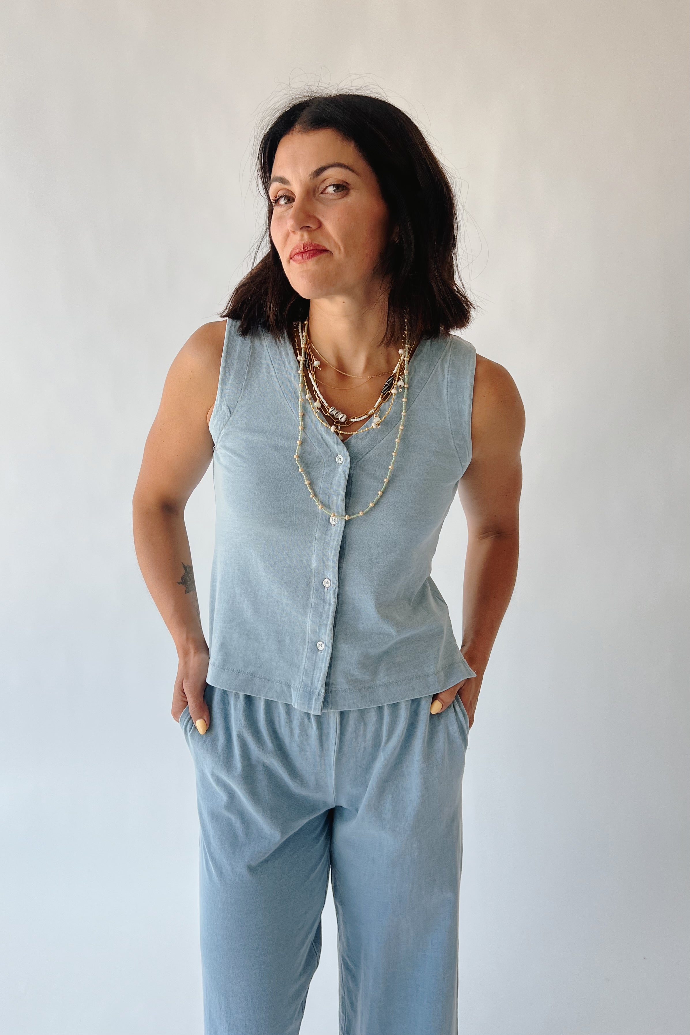 The Benard Relaxed Tank in Light Denim