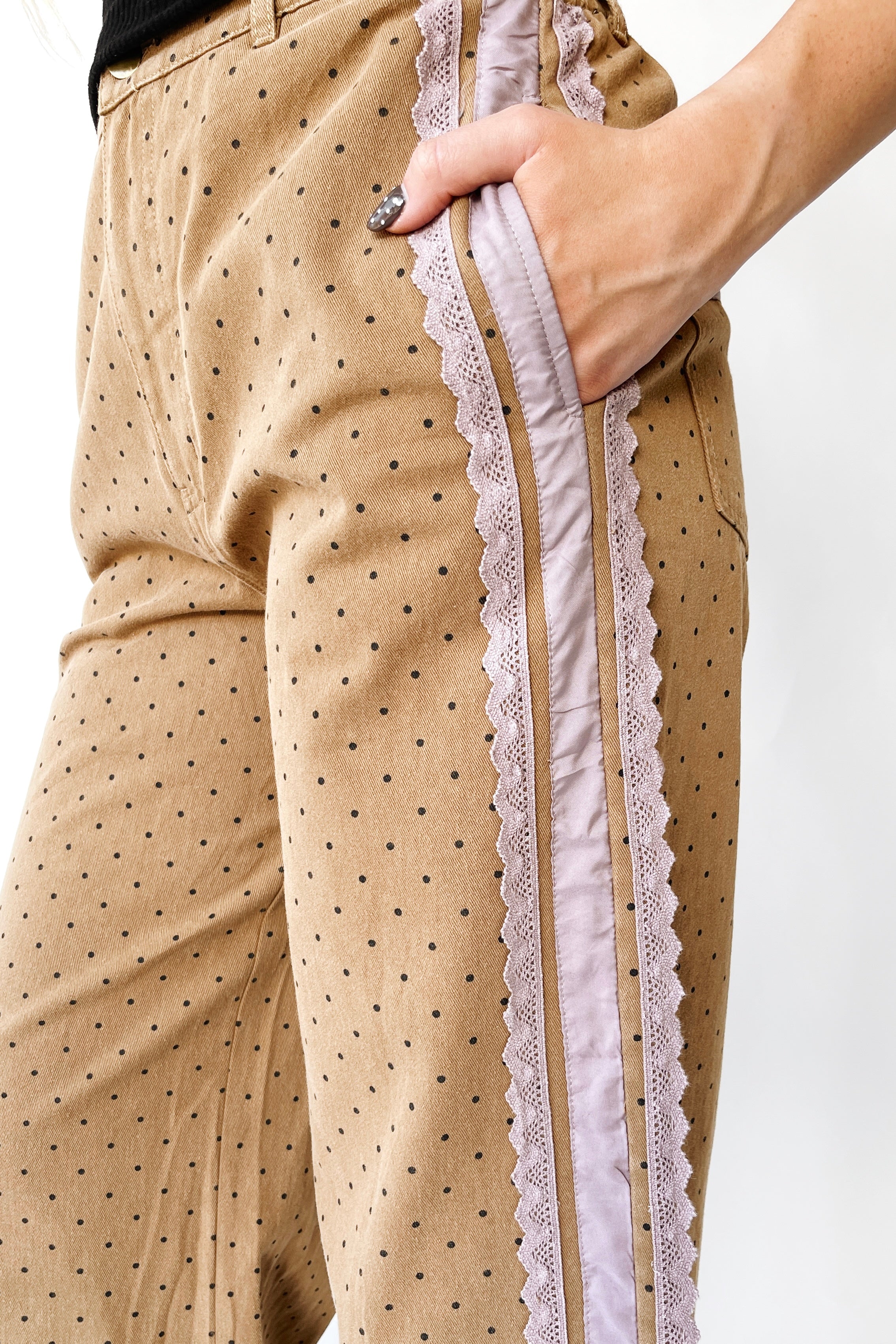 The Laurie Polka Dot Denim Pant in Brown