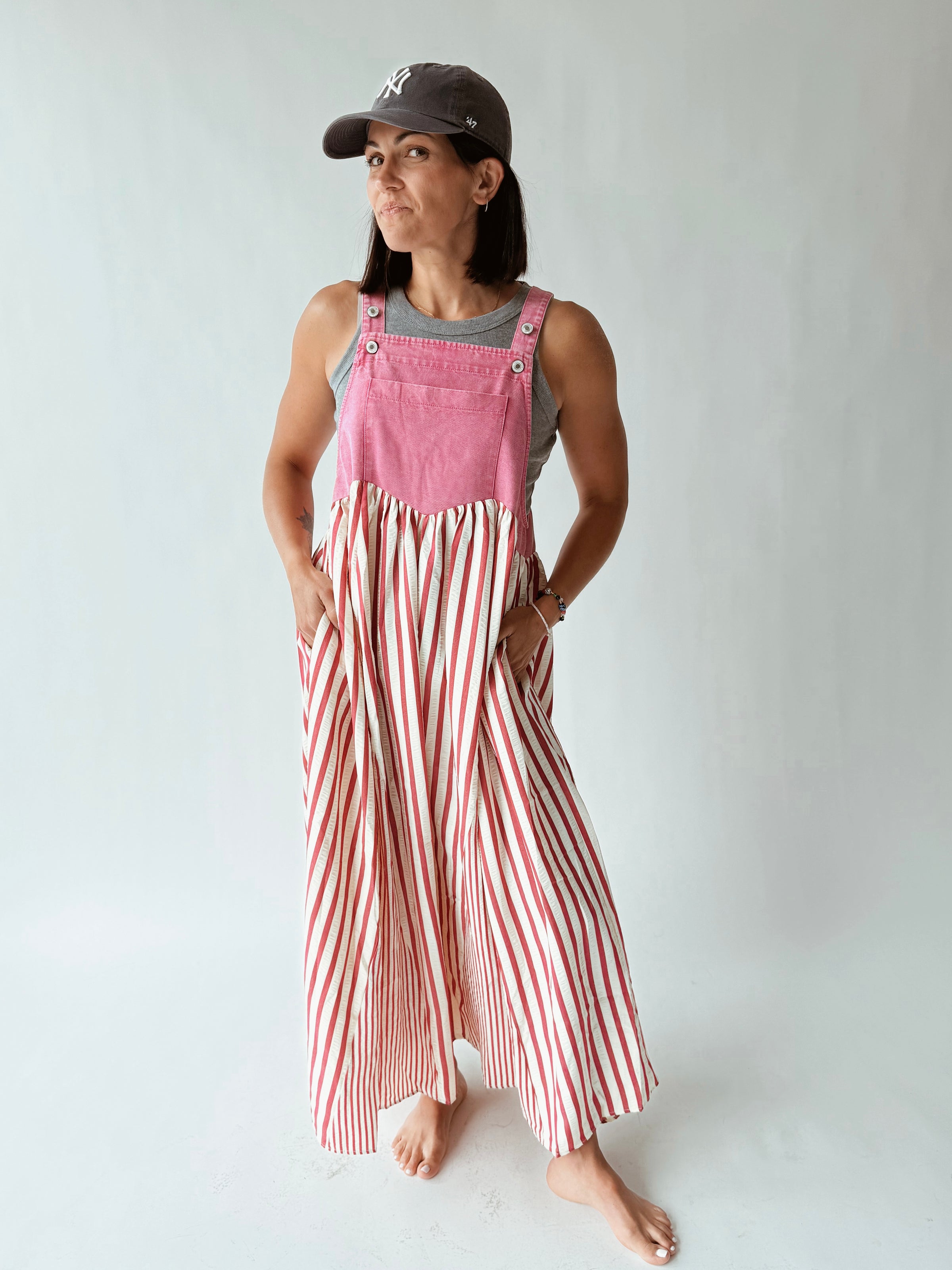Transform your style game with the Hellen Denim Overall Dress in Hot Pink! This playful dress features a washed olive color, perfect for any season. With a unique overall design, you can easily dress it up or down. Add some quirk and fun to your wardrobe today!