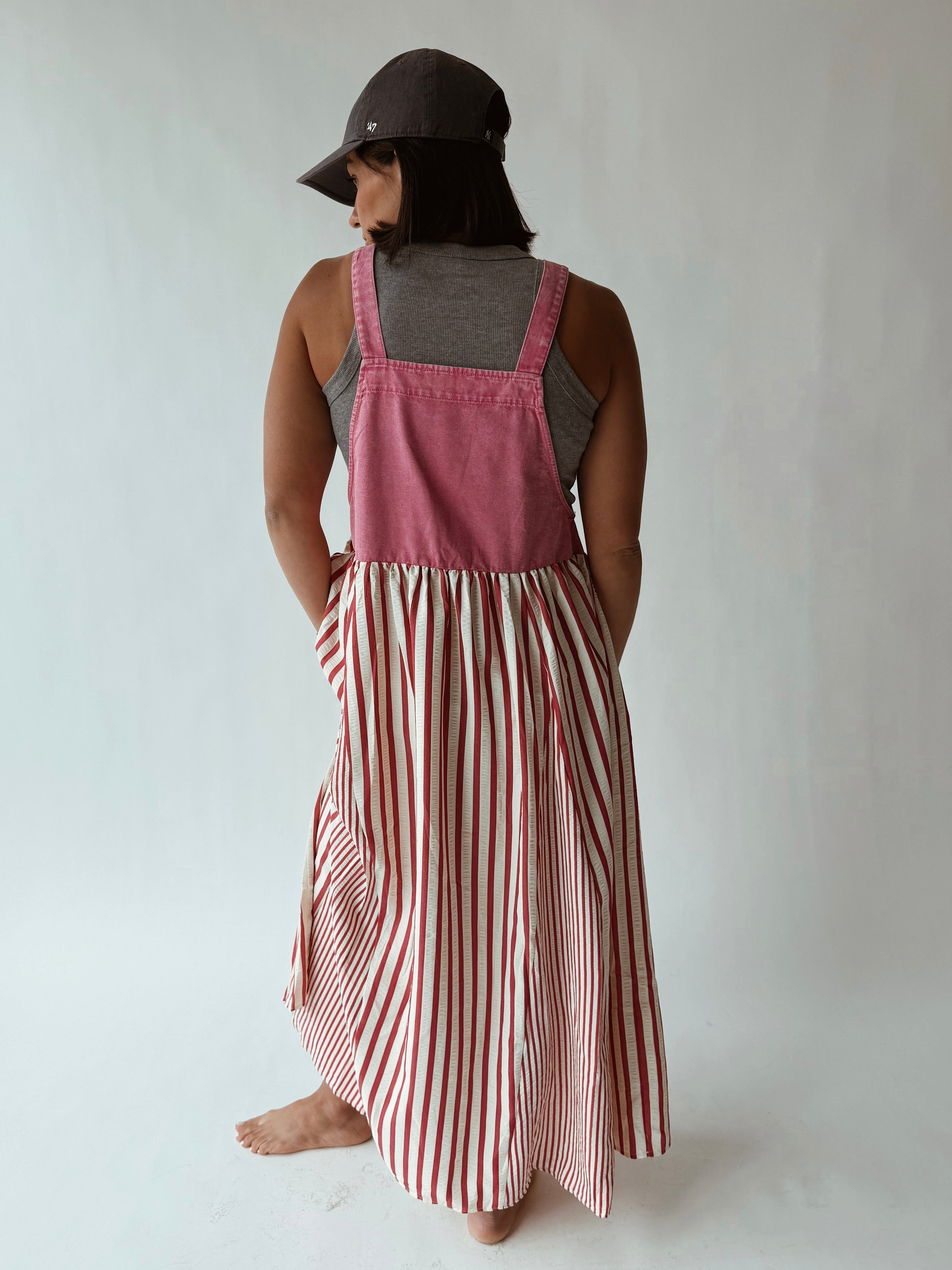The Hellen Denim Overall Dress in Washed Hot Pink