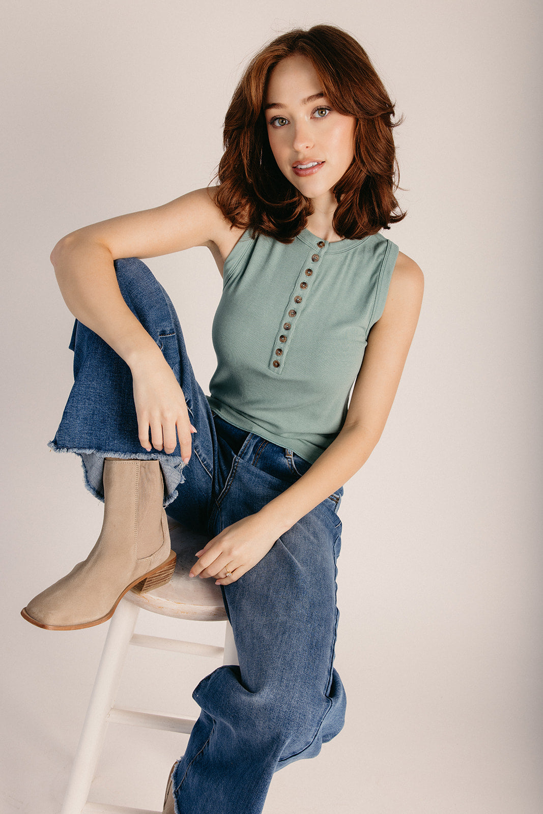 The Janovsky Button-Up Ribbed Tank in Sage