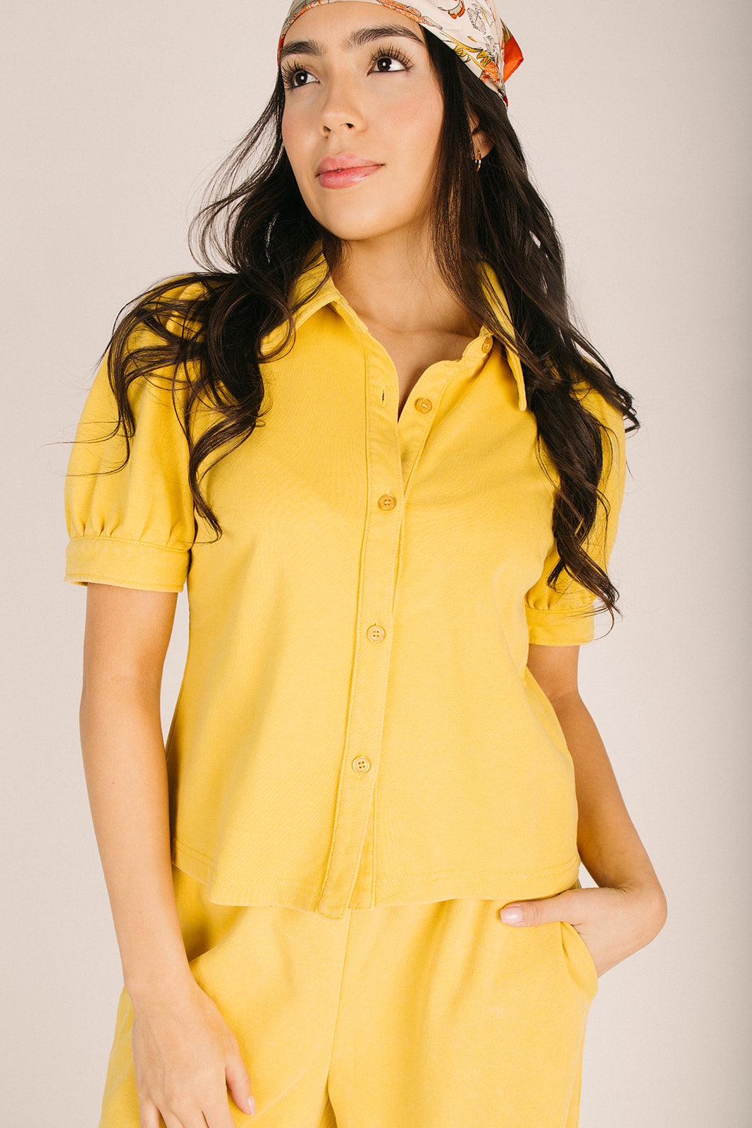 The Letson Button-Up Blouse in Honey Mustard