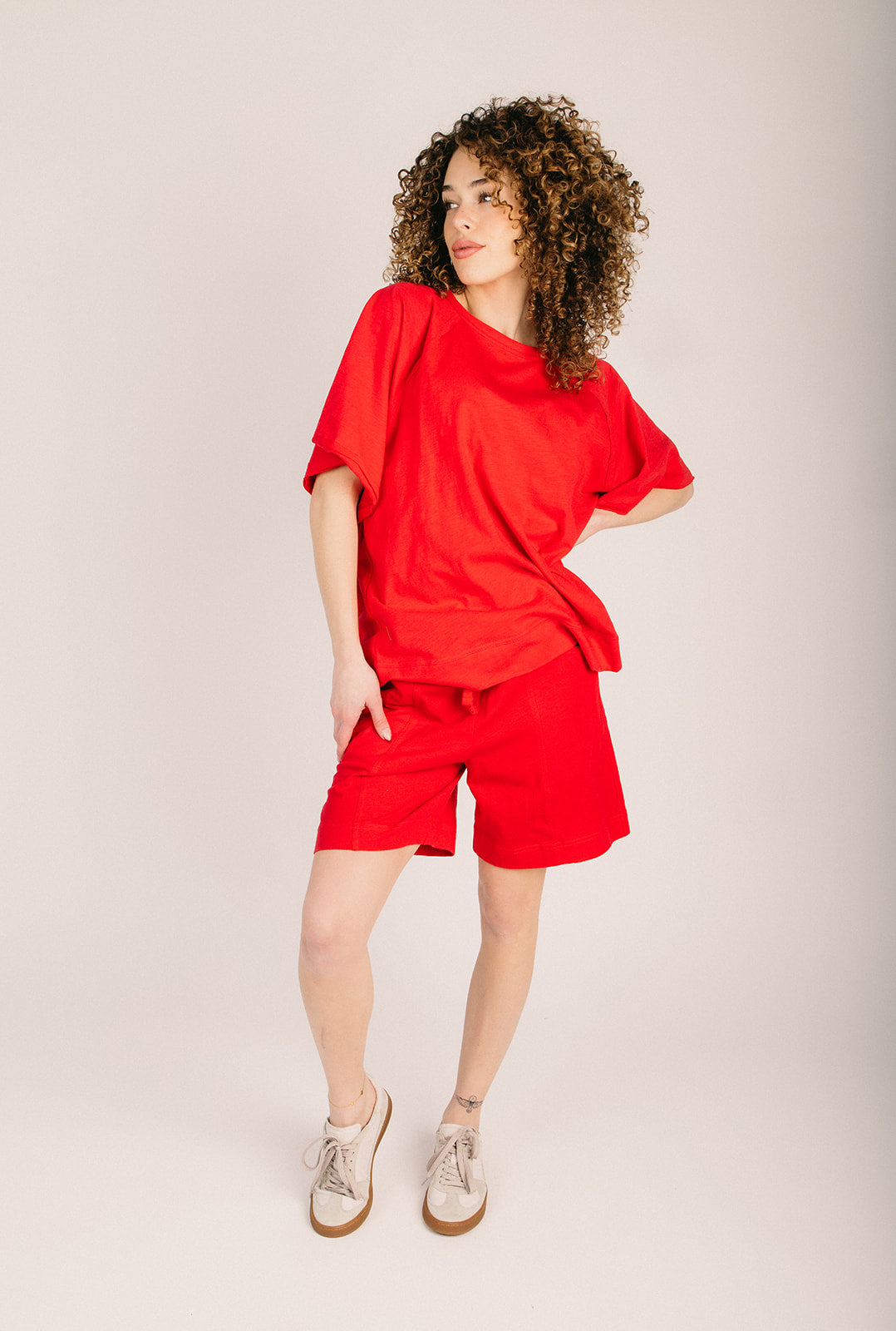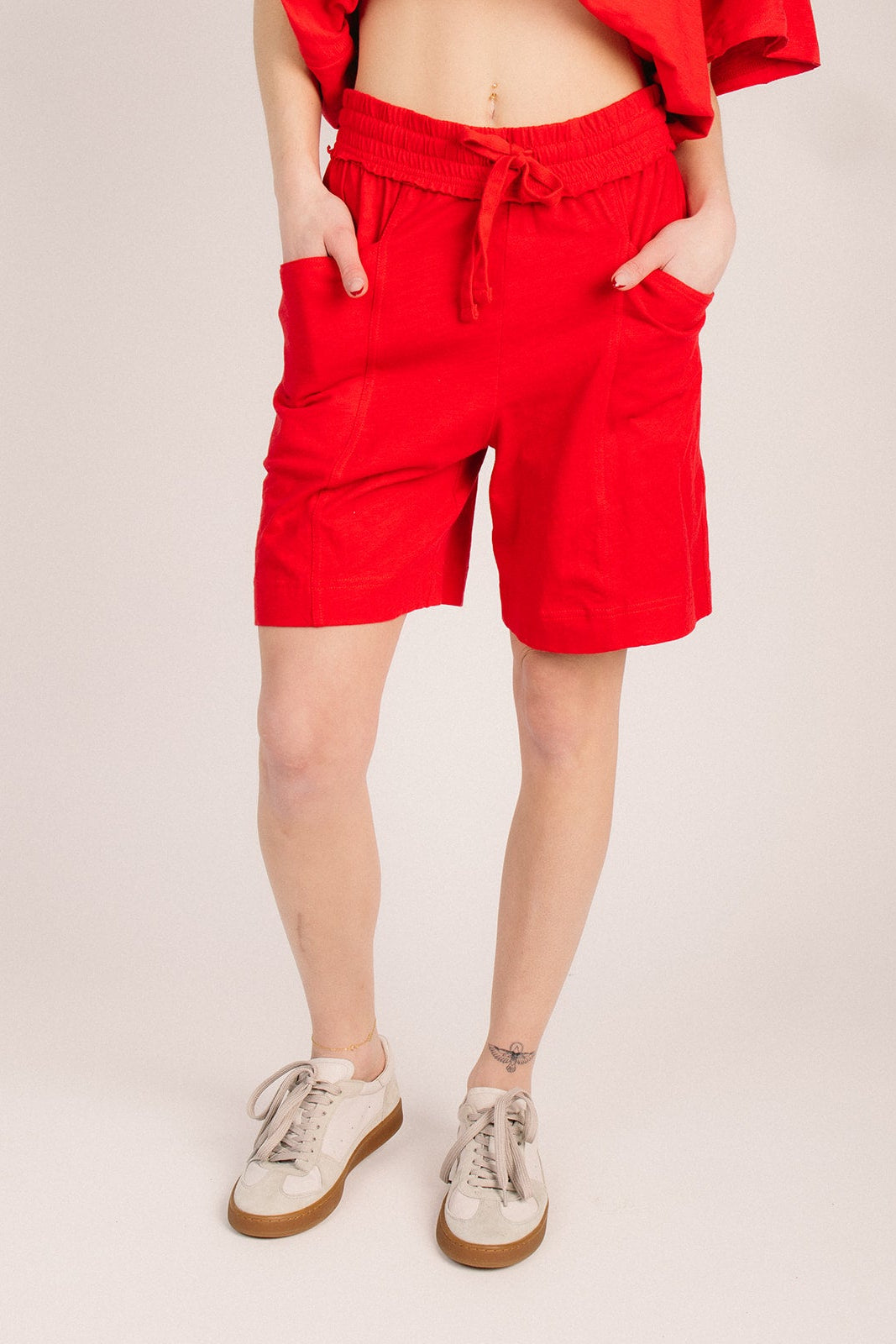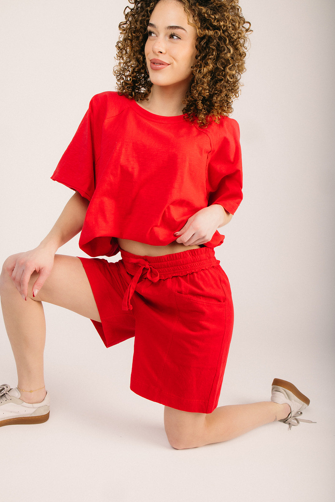 The Marie Cotton Lounge Short in Red Slip into pure comfort with these breezy cotton lounge shorts that practically beg for lazy days. Crafted from soft, breathable fabric, they're your new go-to for lounging around the house, running errands, or those moments when style meets coziness. The vibrant red hue adds a fun pop of color to your casual rotation, while the relaxed fit keeps things effortless. Whether you're coffee-in-hand or Netflix-bound, these shorts deliver the perfect blend of laid-back vibes and put-together ease.