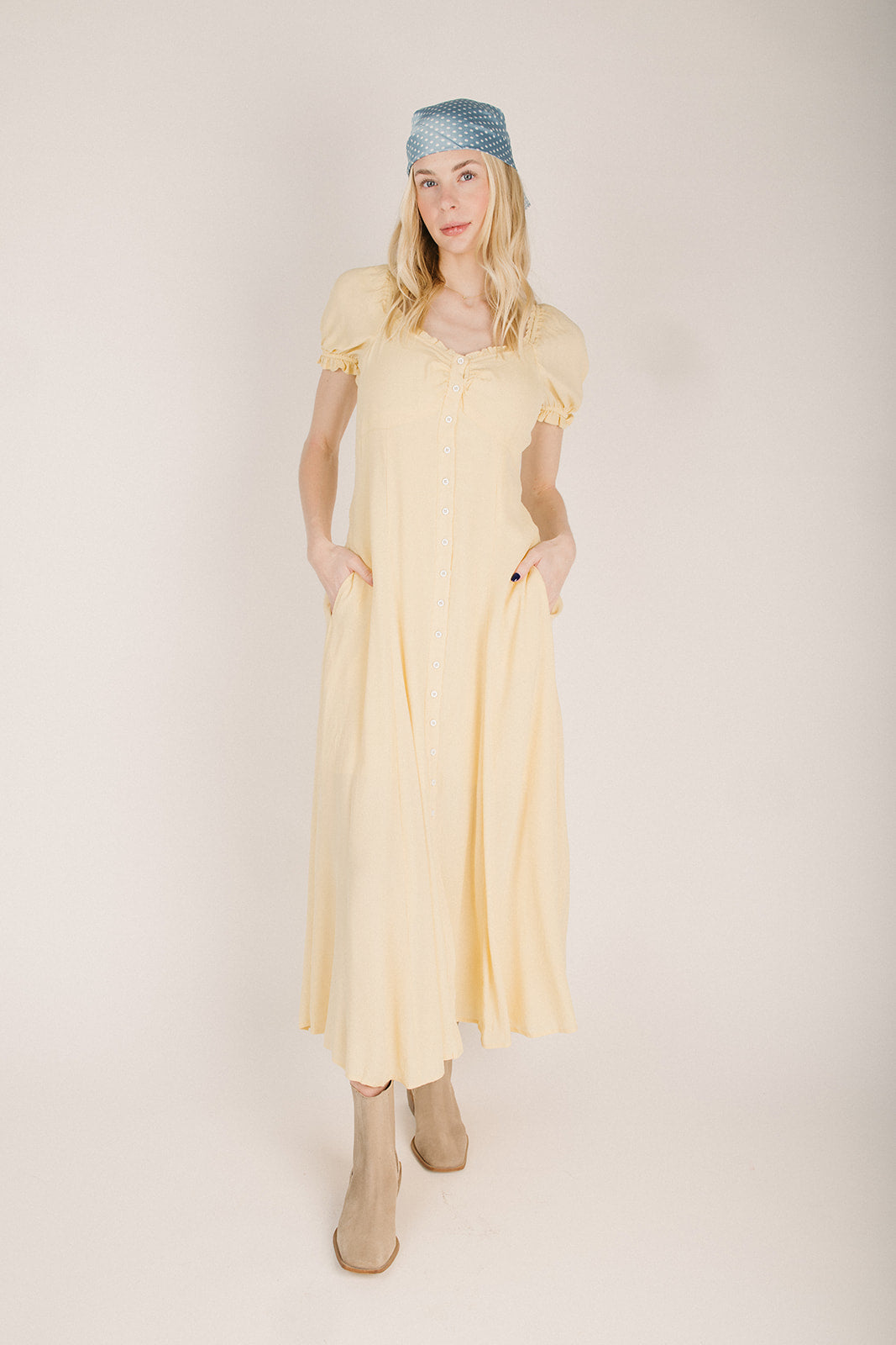 The Romesberg Button Down Maxi Dress in Lemon Water